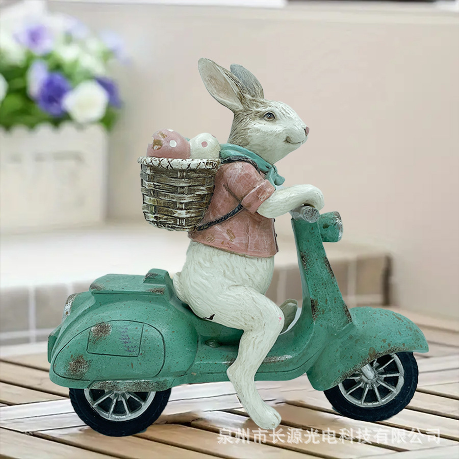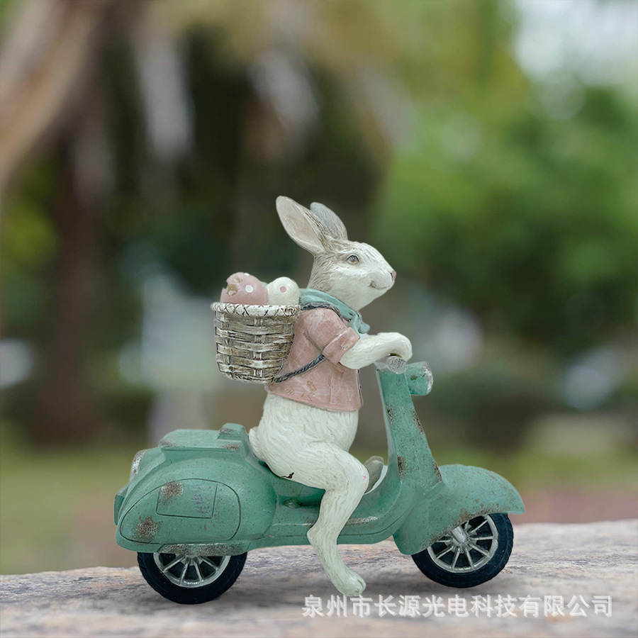 在庫あり イースターバニー サイクリング レジン工芸品 置物 室内デスクトップ イースターデコレーション 手作り