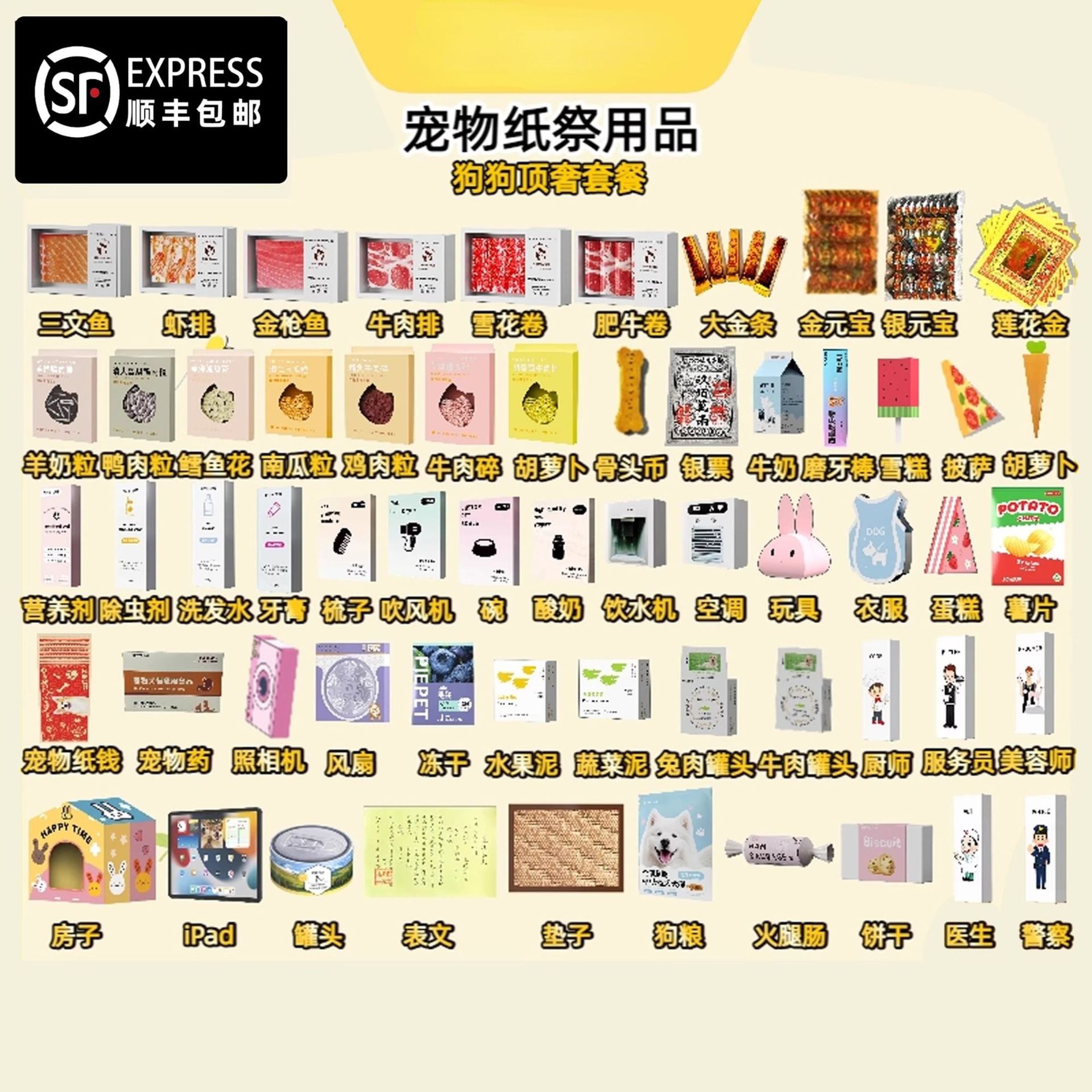 宠物祭祀贡品狗狗头七猫咪全套宠物纸烧宠物贡品清明节周年纸钱祭