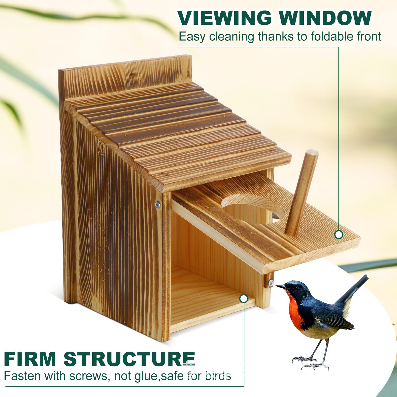 木製焼色鳥の巣ハチドリ繁殖ボックス鳥の巣オウム孵化給餌器スズメ屋外庭壁掛け鳥の巣