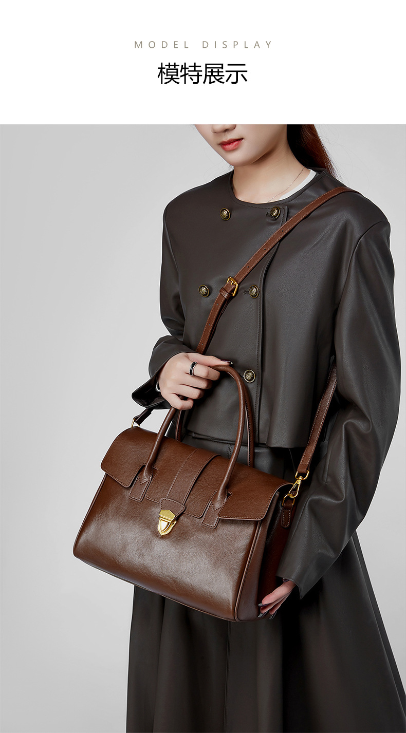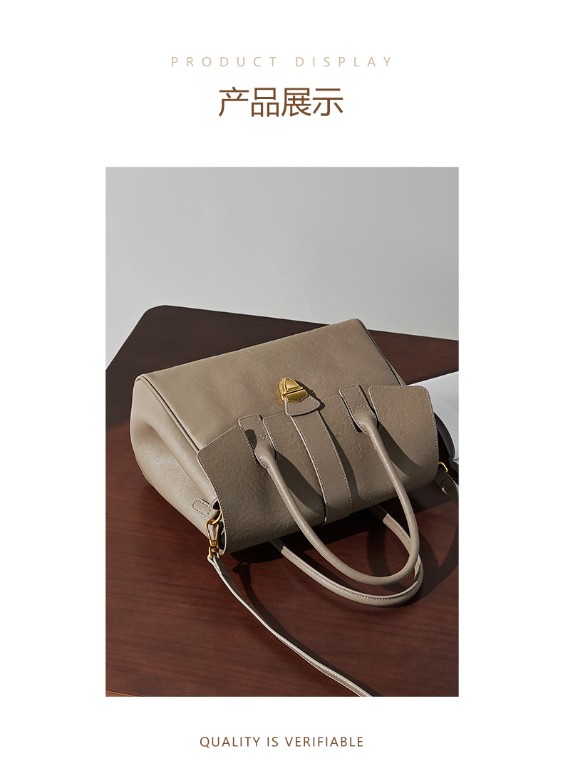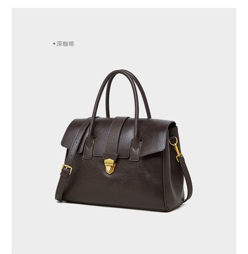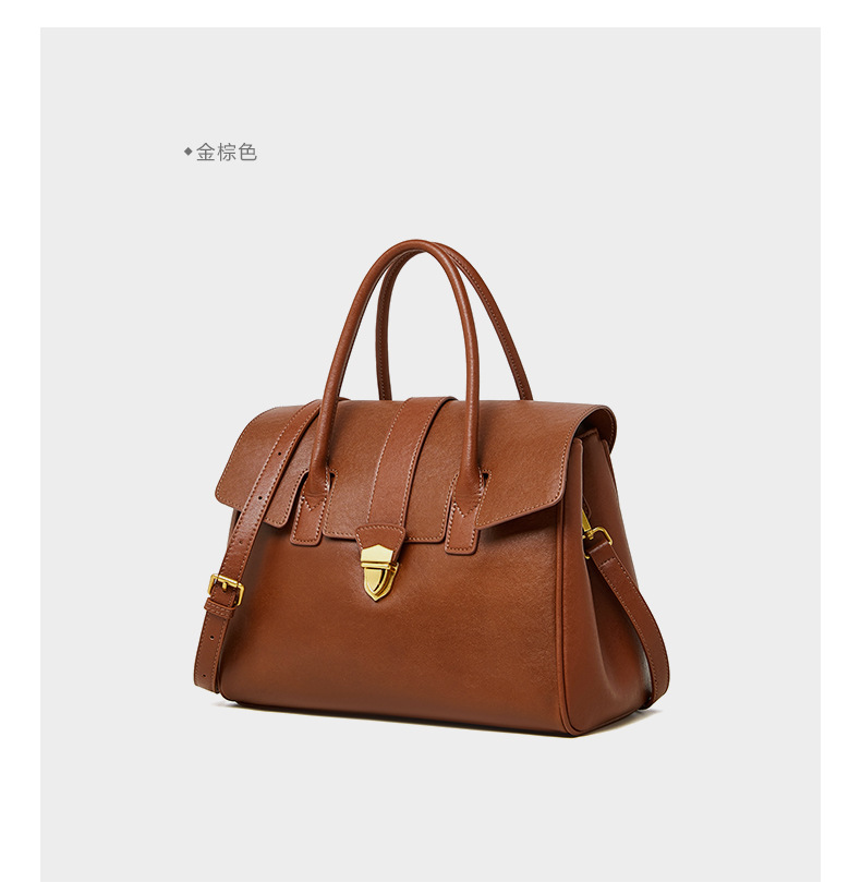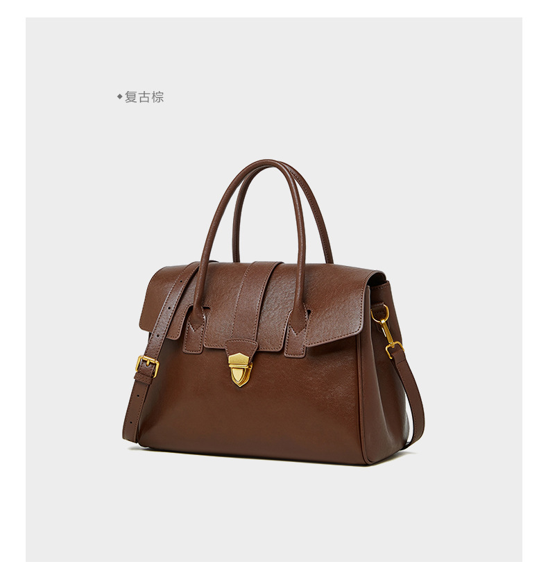 真皮小众手提女包2025新款复古植鞣牛皮简约皮带扣公文包单肩斜挎