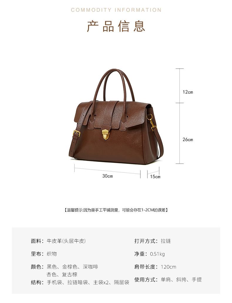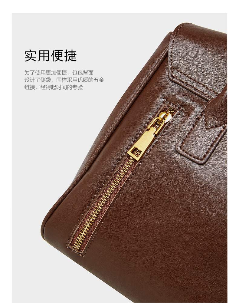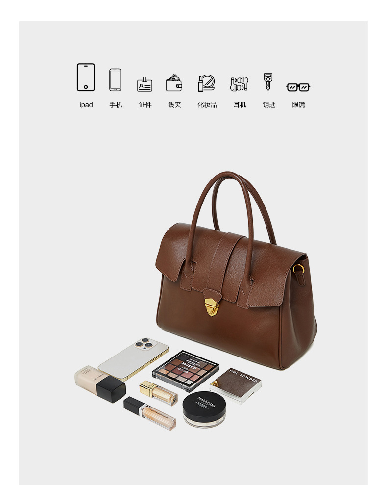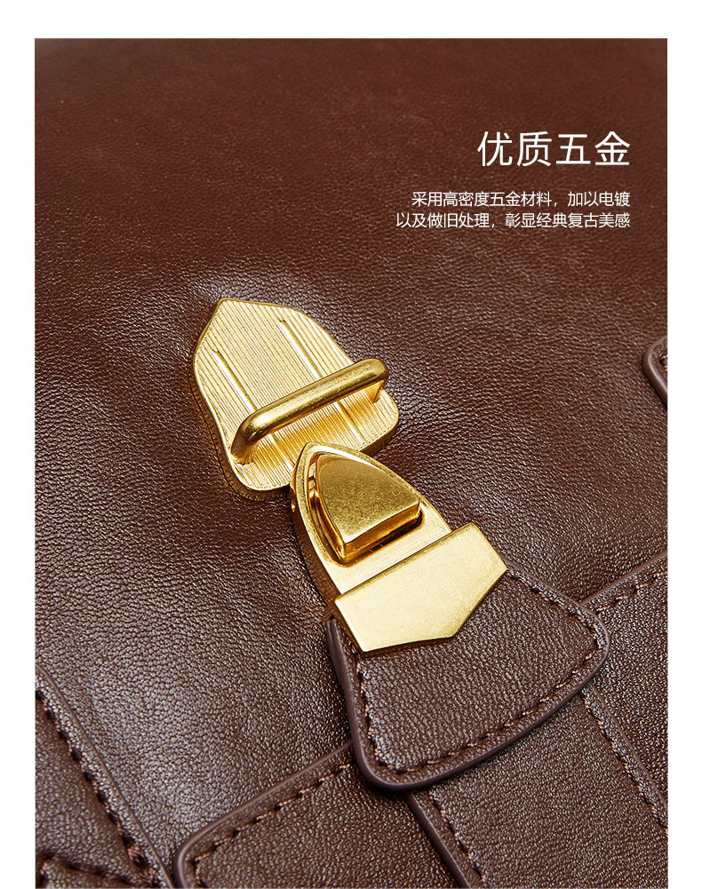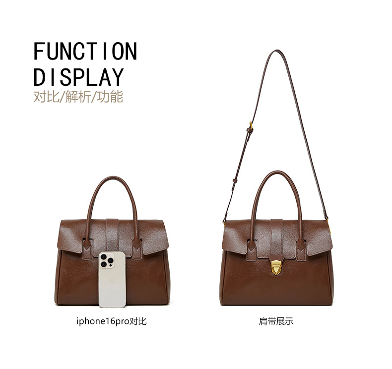 真皮小众手提女包2025新款复古植鞣牛皮简约皮带扣公文包单肩斜挎