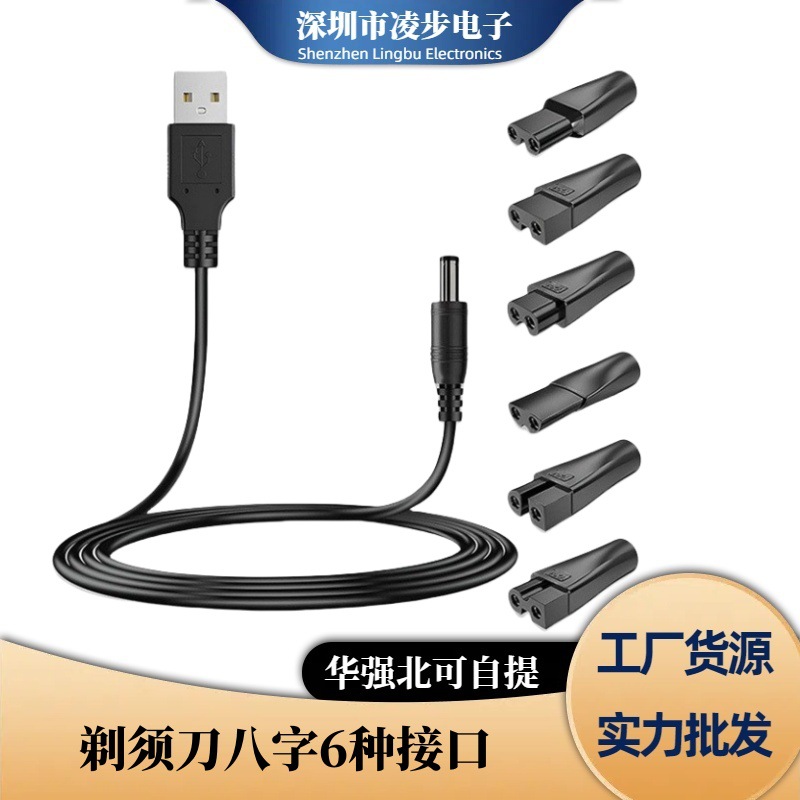 USB5521母座转双孔转接头理发器剃须刀八字6种接口充电转换器套装