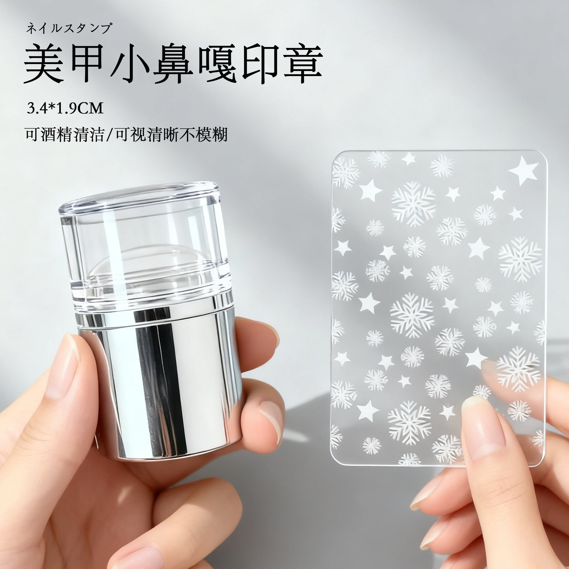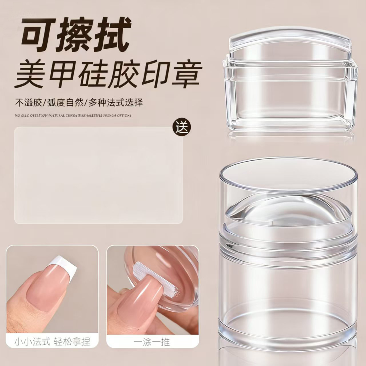 新款可擦拭美甲硅胶印章高透法式印花工具DIY美甲钢板图案转印章