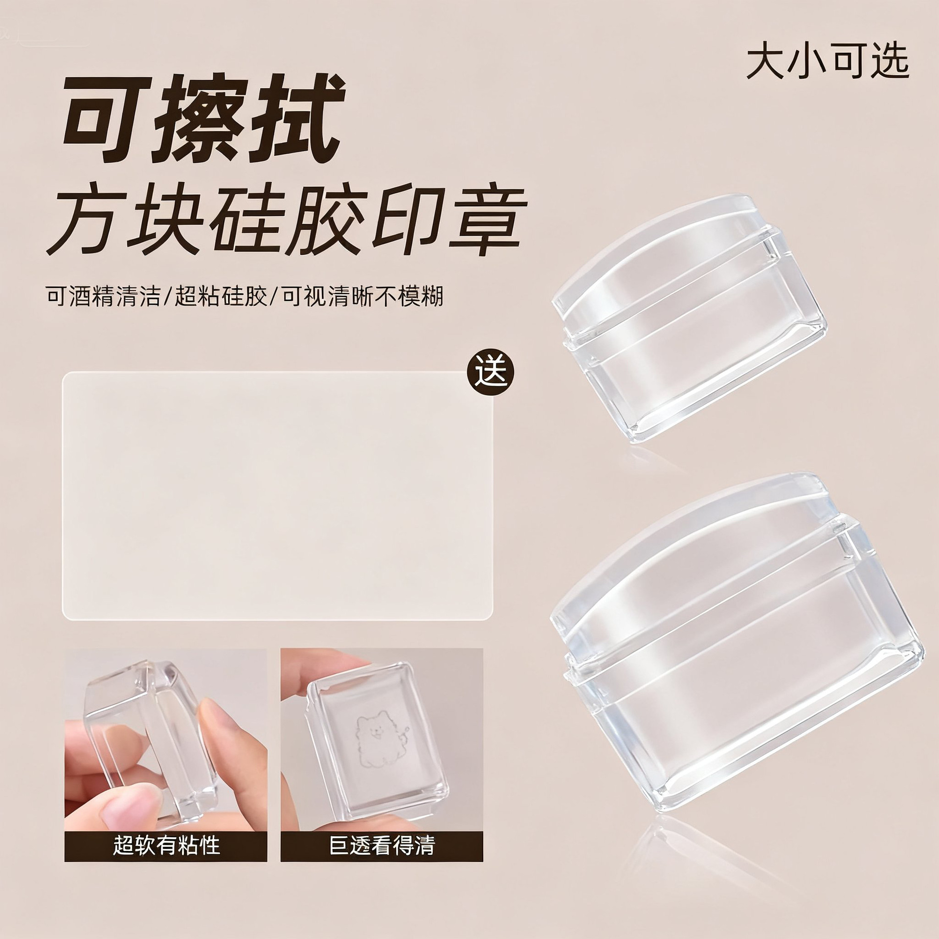 可擦洗美甲小方块印章多功能法式印花高透硅胶印章钢板转印工具