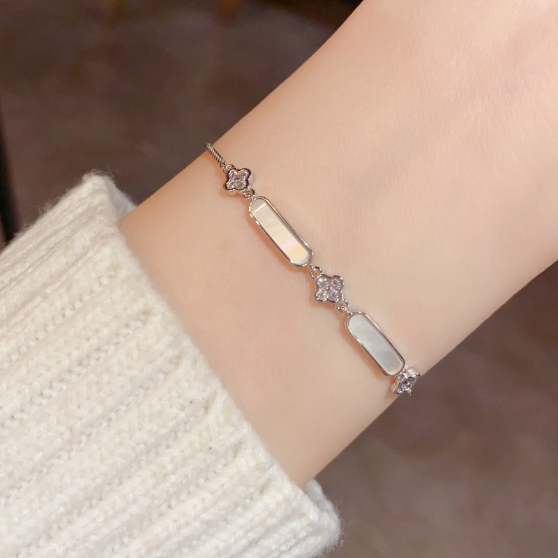 小衆のシンプルなデザインのジルコン四葉花のブレスレットは高級感があります。