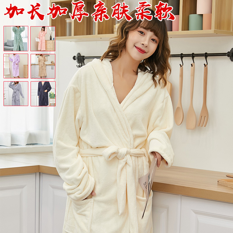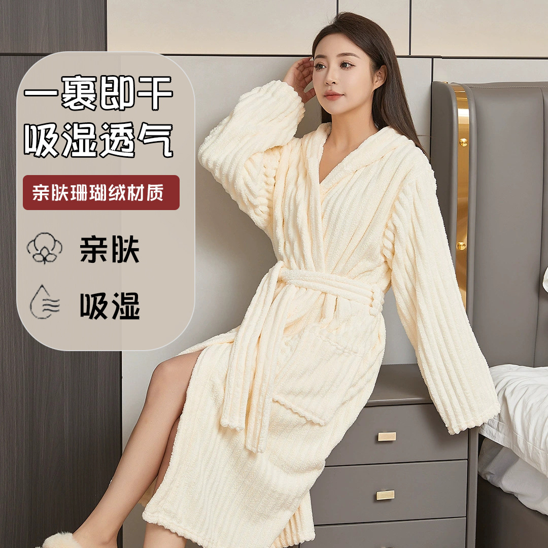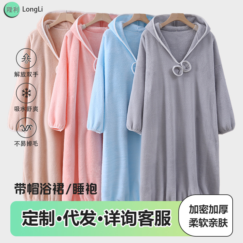 バスローブ、フード付きバススカート、コーラルベルベット、着用可能なバスタオル、長めで厚手のバススカート、長袖バスローブ、既製品バスタオル、バスローブ工場
