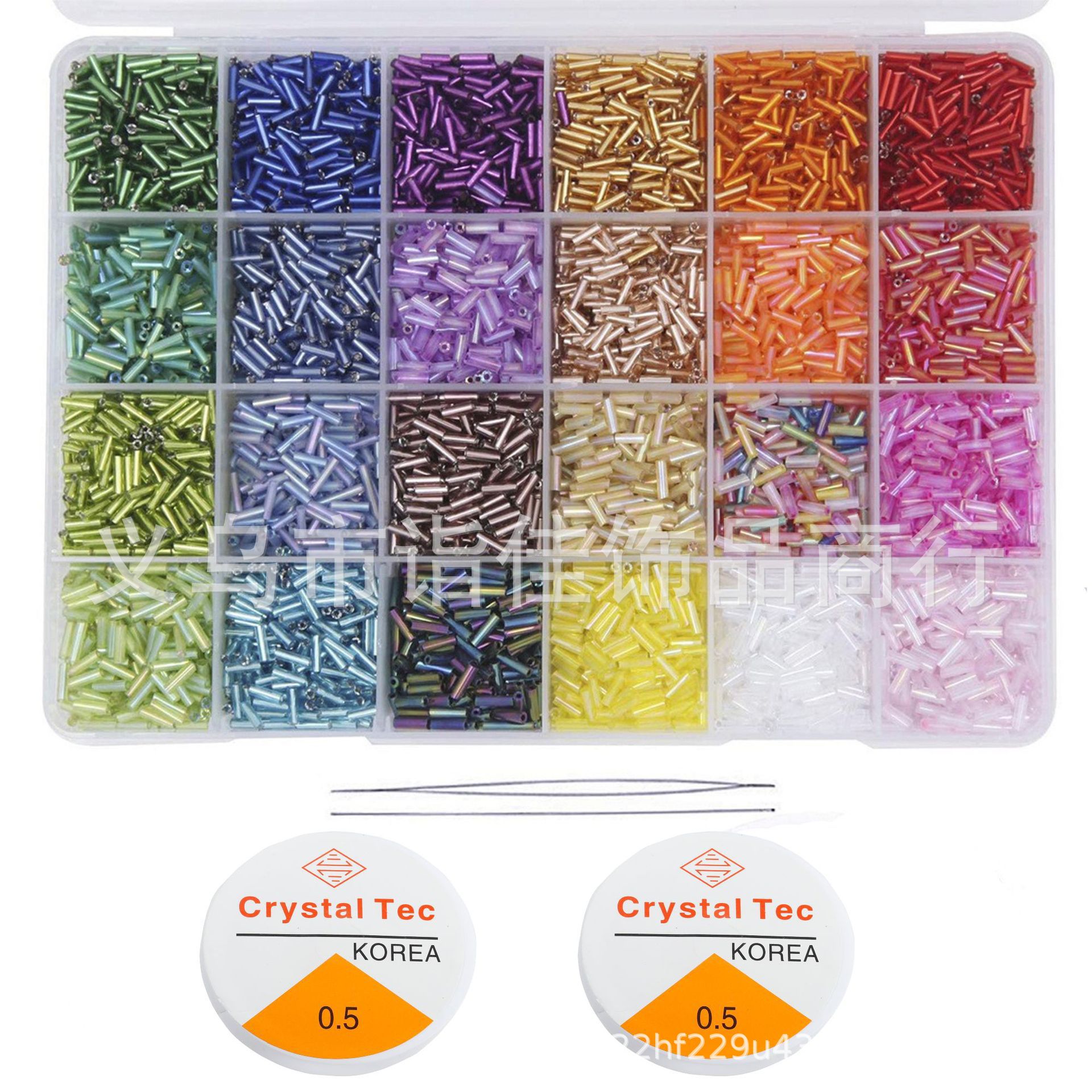 2 * 6.5mmガラス米珠管珠ビーズ散珠24格箱セット9600個箱