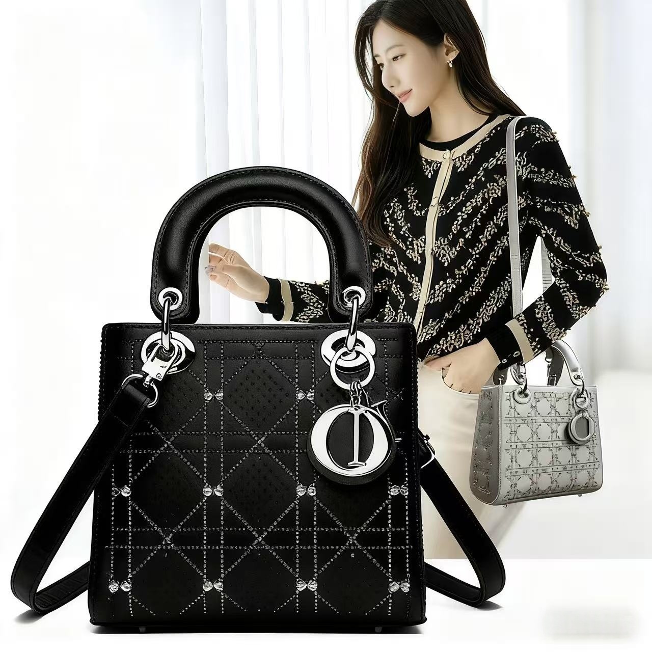 2026新款高级质感轻奢菱格压花手提戴妃包包女斜挎包百搭单肩包包