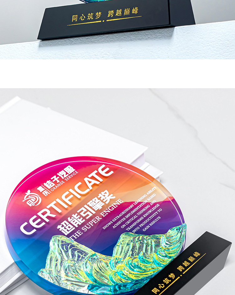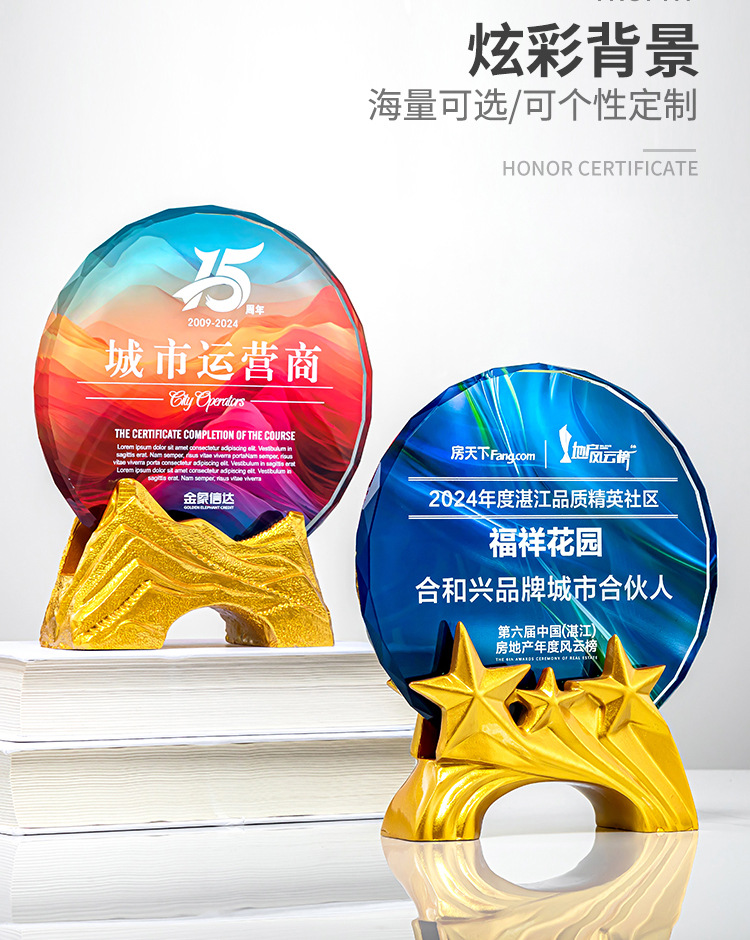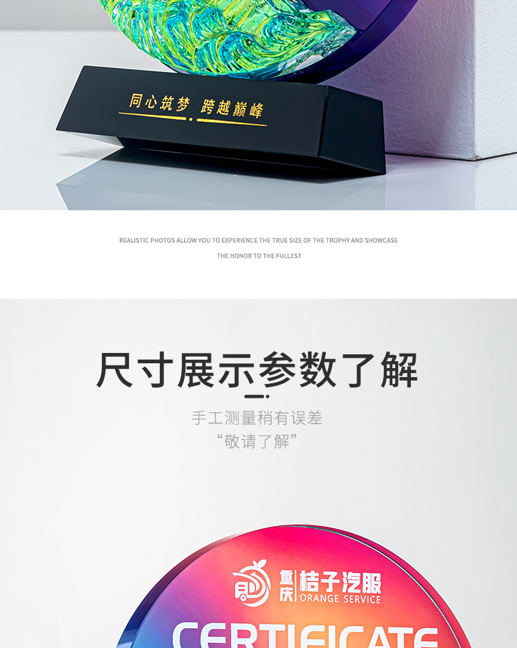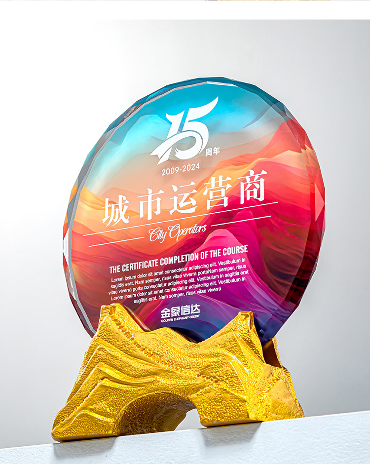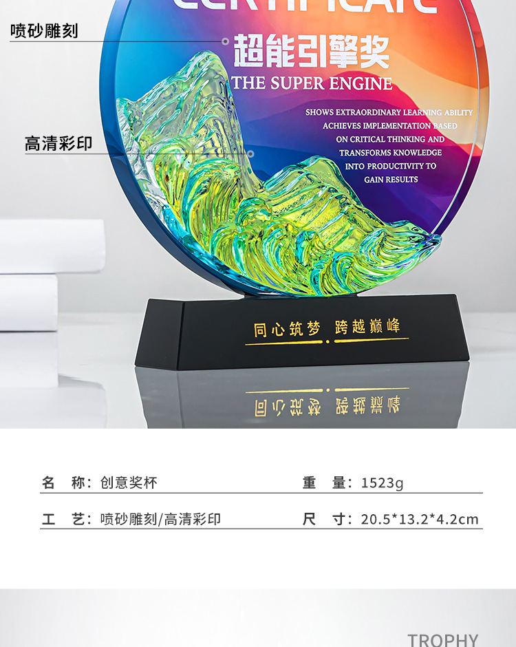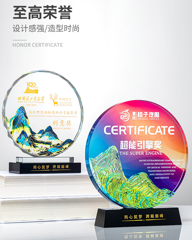 クリエイティブクリスタルトロフィーカスタムカラープリント写真斜面屏風クリエイティブ彫刻制作会社優秀社員メダル