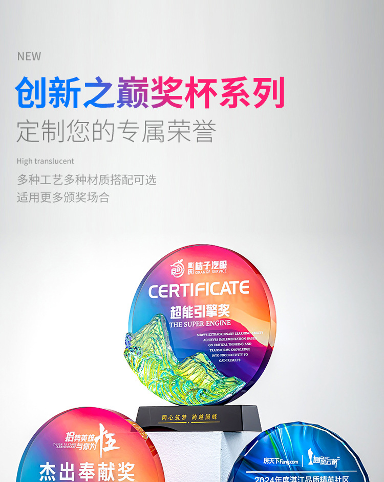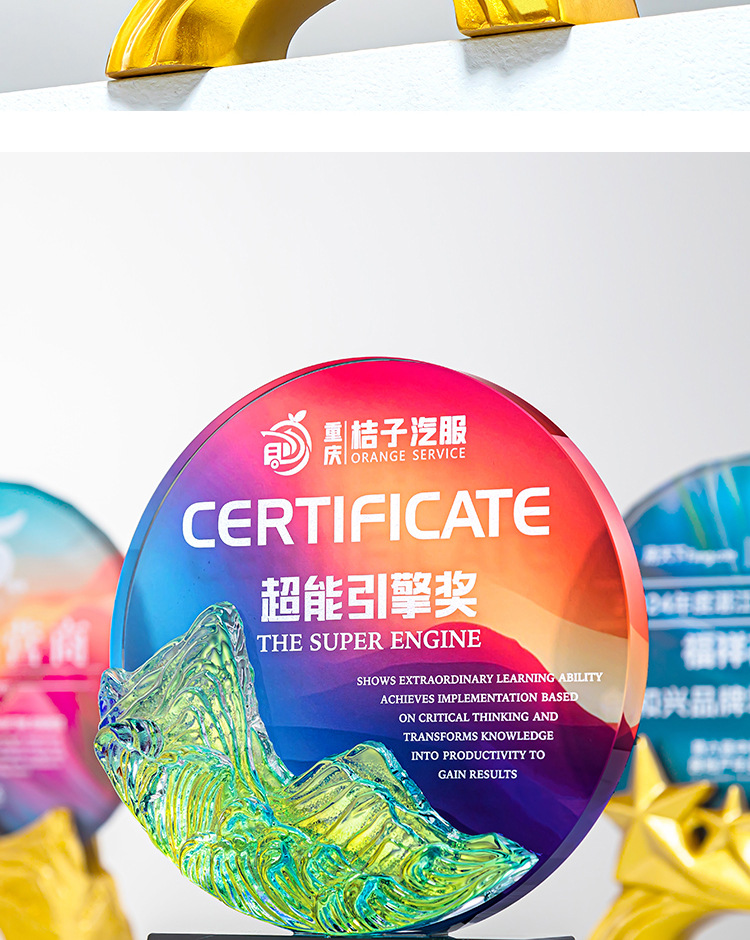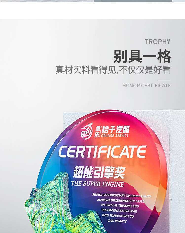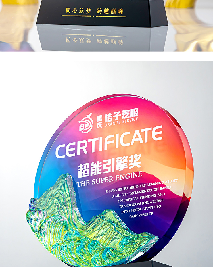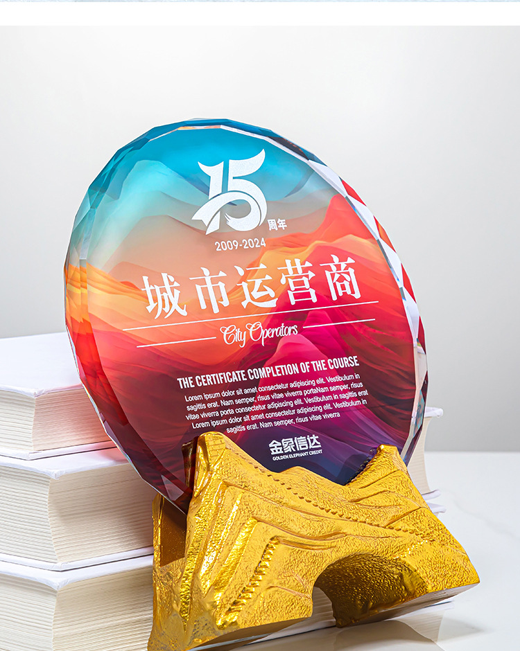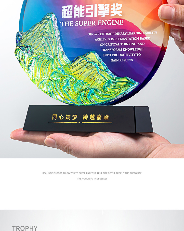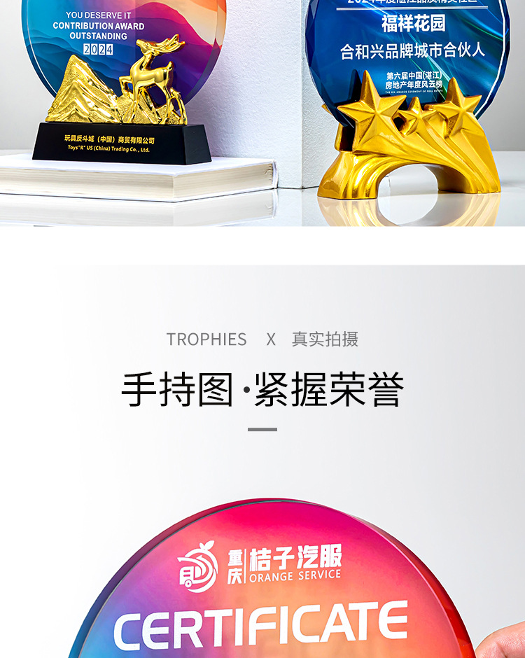 クリエイティブクリスタルトロフィーカスタムカラープリント写真斜面屏風クリエイティブ彫刻制作会社優秀社員メダル