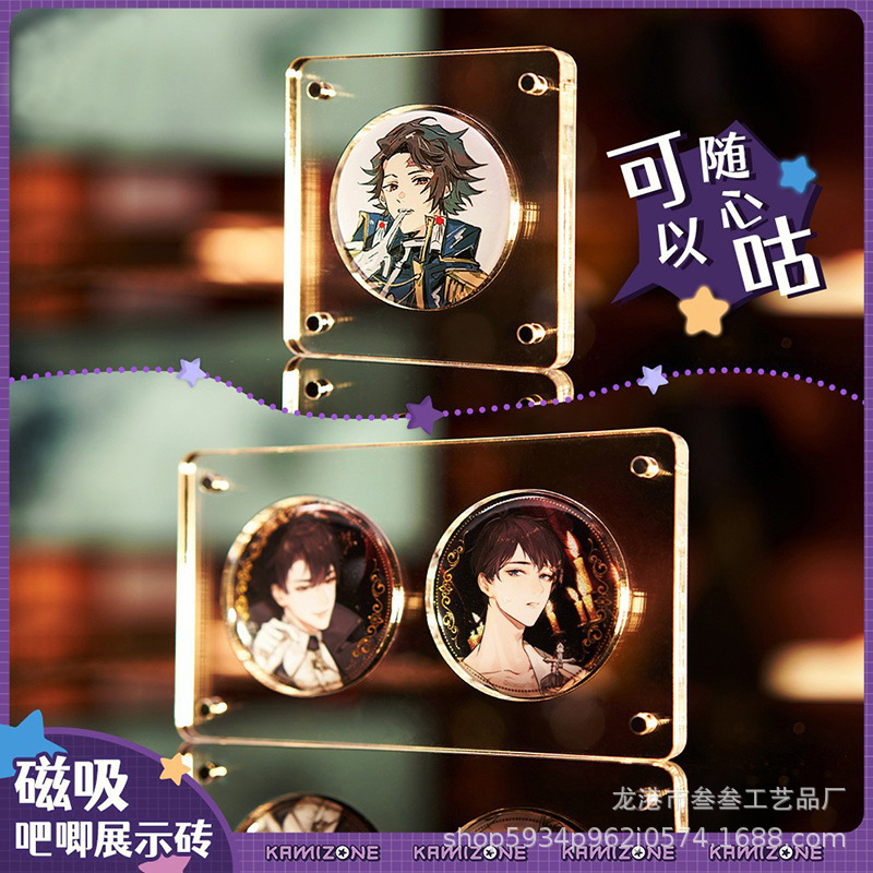 レンガのアクリルを展示しましょう。レンガの谷子バッジを収納しましょう。