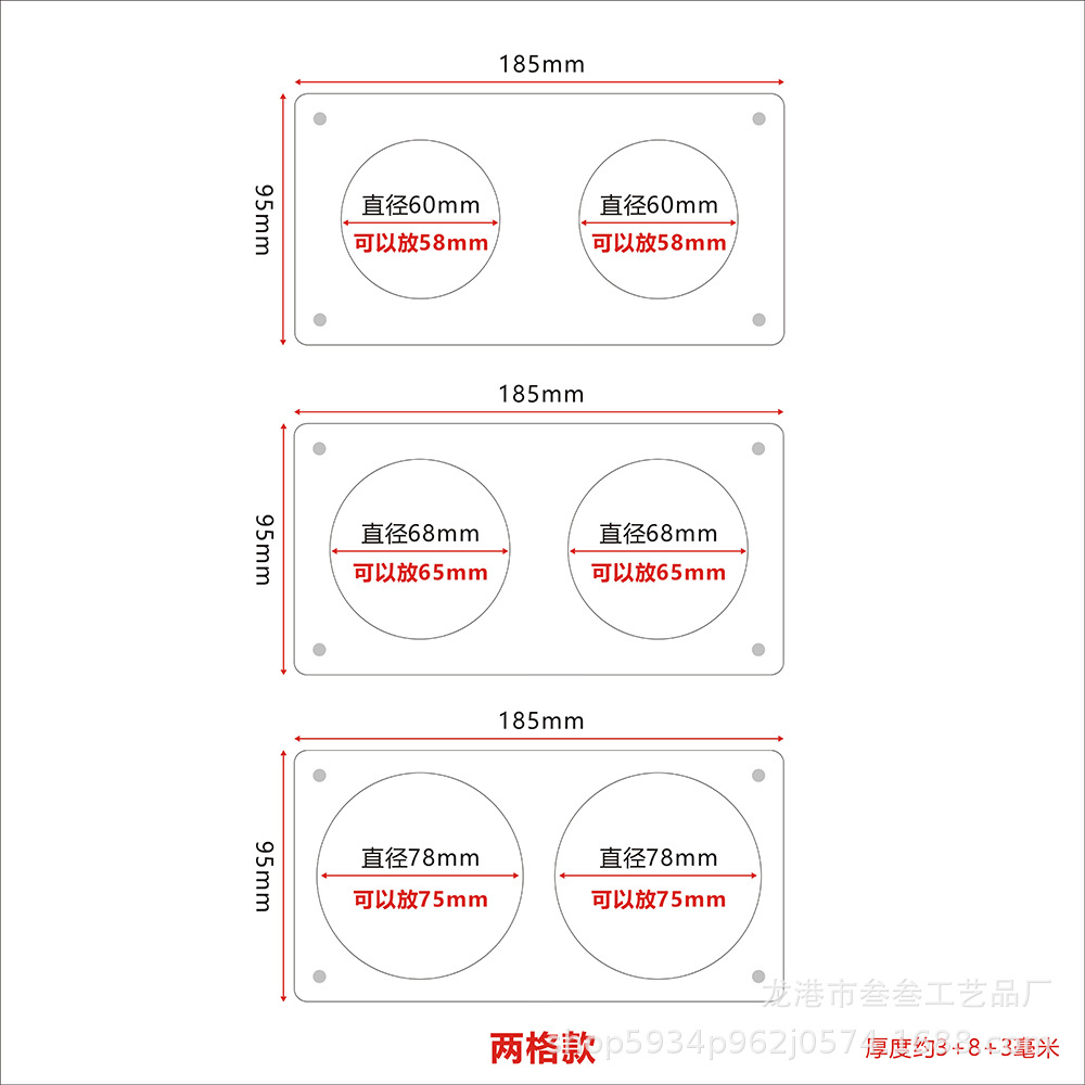 仕様 丸穴直径60MM(58mm収納可能),丸穴直径68MM(65mm収納可能),丸穴直径78MM(75mm収納可能)