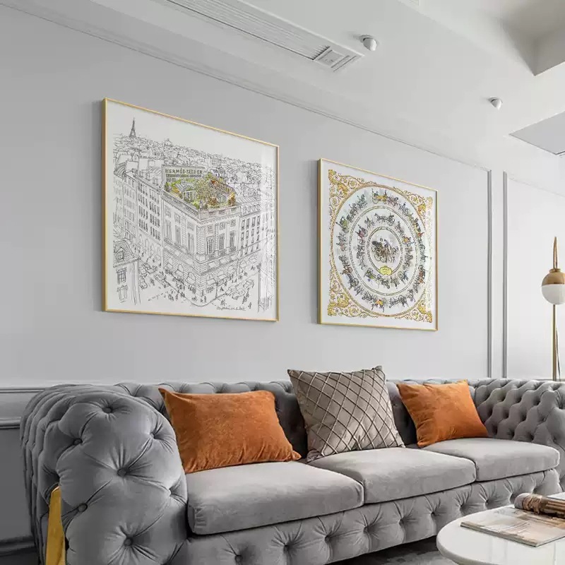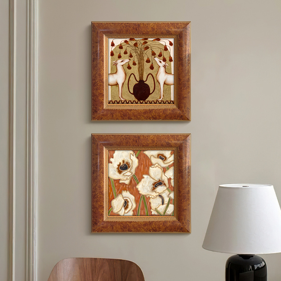 フランス式大衆芸術装飾画客間組み合わせ掛け画寝室高級感デザイナー実木中古風壁画