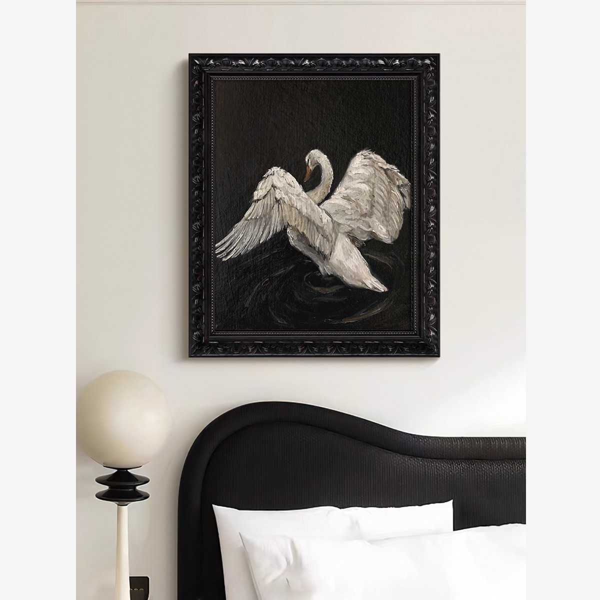 白鳥白黒実木現代アメリカレトロ芸術客間装飾画高級感フランス中古風玄関臥