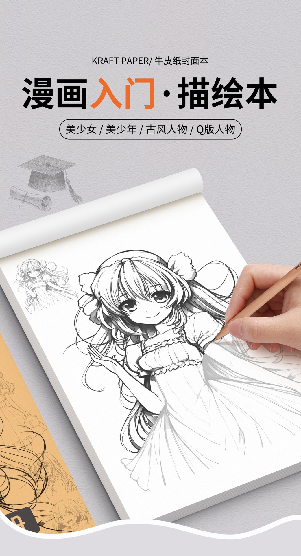 漫画トレース本入門教材独学ゼロ基礎スケッチ本小学生絵本練習帳児童絵画