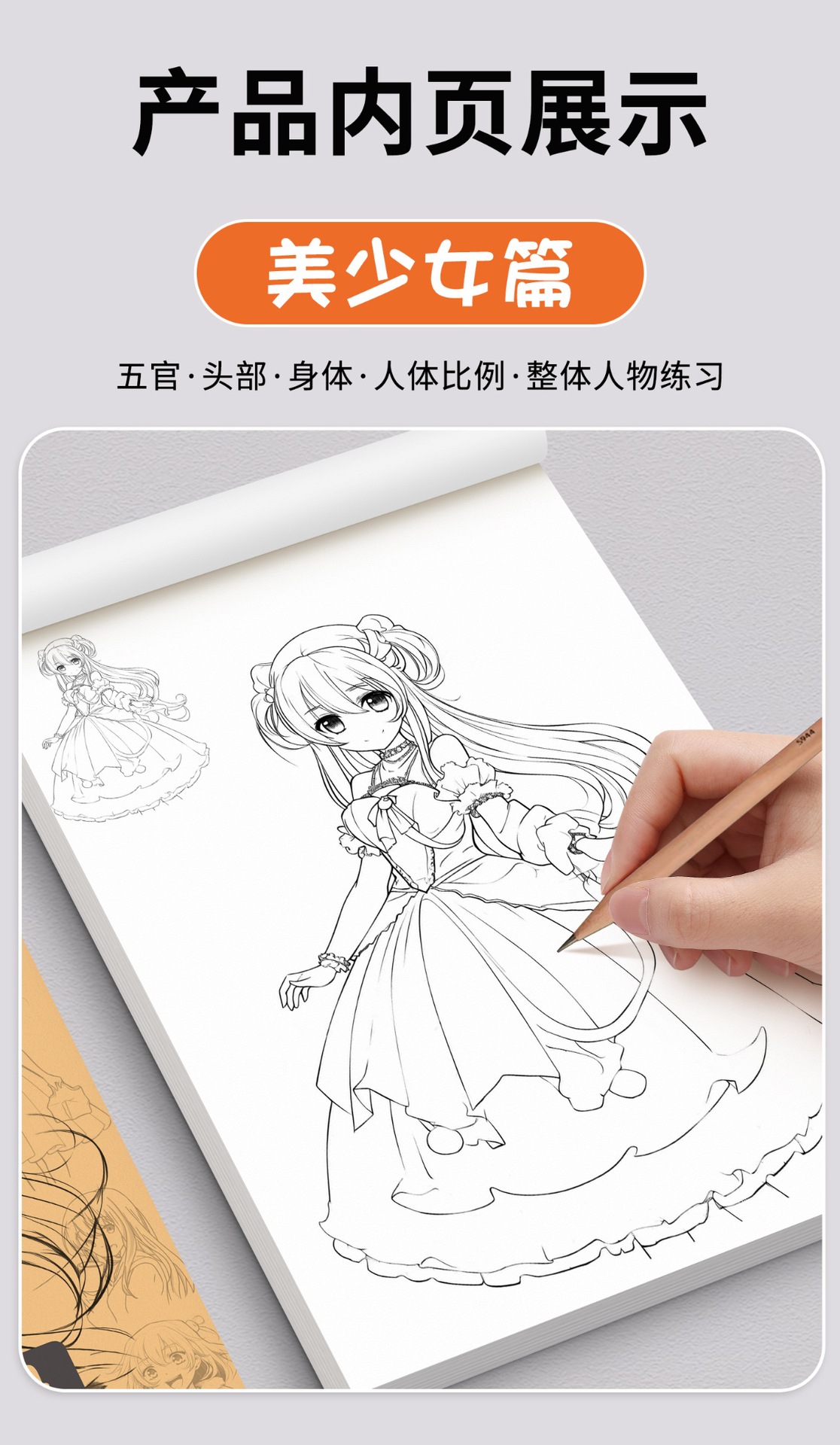 漫画入门手描き描き下ろし本アニメキャラクターライン原稿描き下ろし子供描き下ろし美少女古风人物絵画
