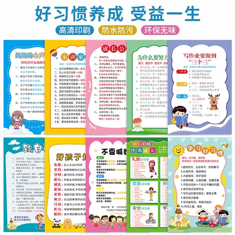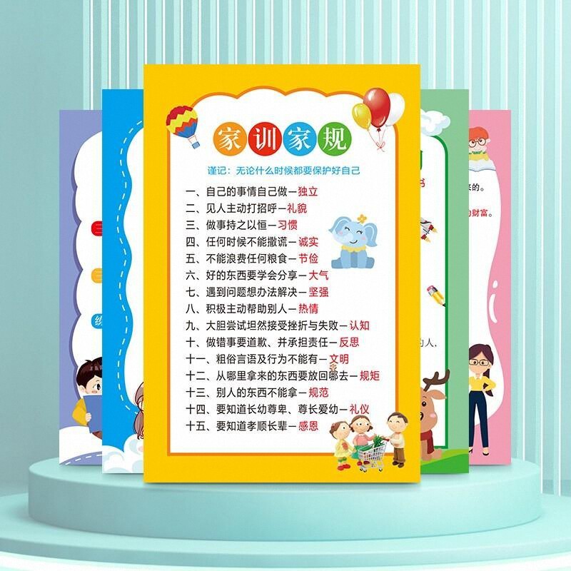 家訓家規の壁に学生の励ましの文化の表題の言葉を貼って子供の成長の啓蒙の早教のフルセットの掛け図を掛けます。