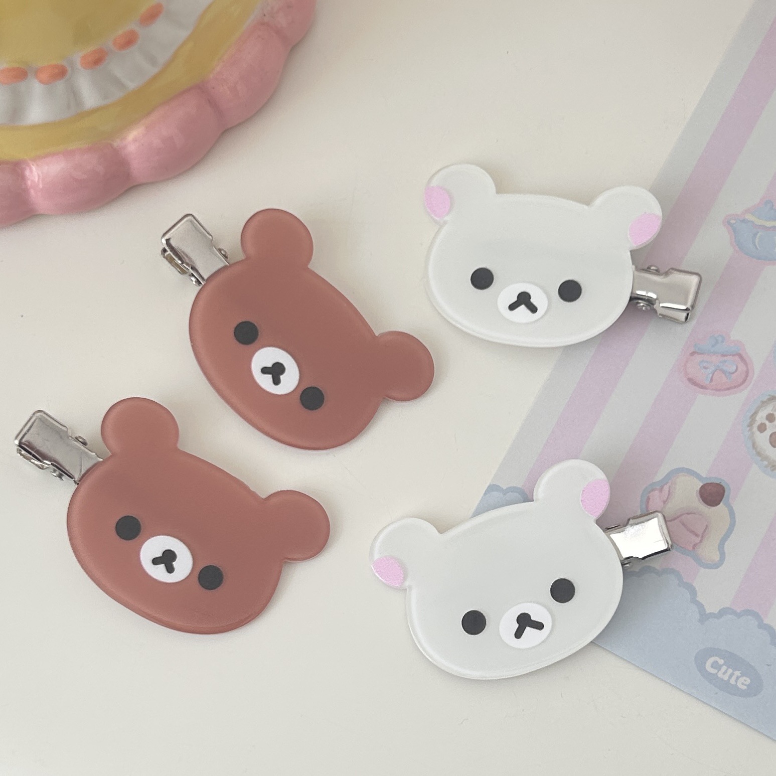 かわいいリラックマヘアクリップ無痕少女サイドアヒル口クリップ甘い学院風学生前髪クリップinsヘアピン
