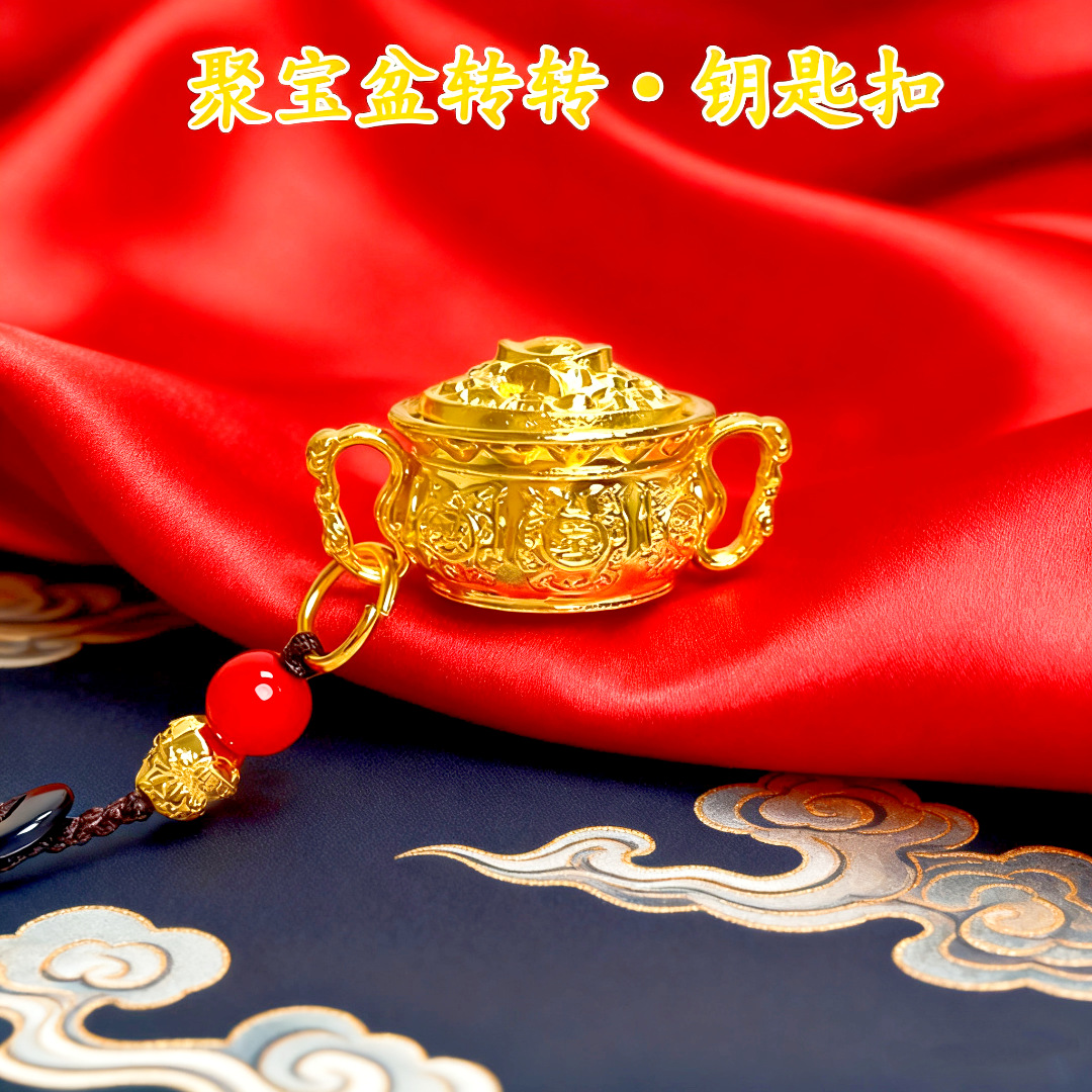 中式民族风合金聚宝盆钥匙扣挂件挂饰配饰金属礼物高级感配件装饰