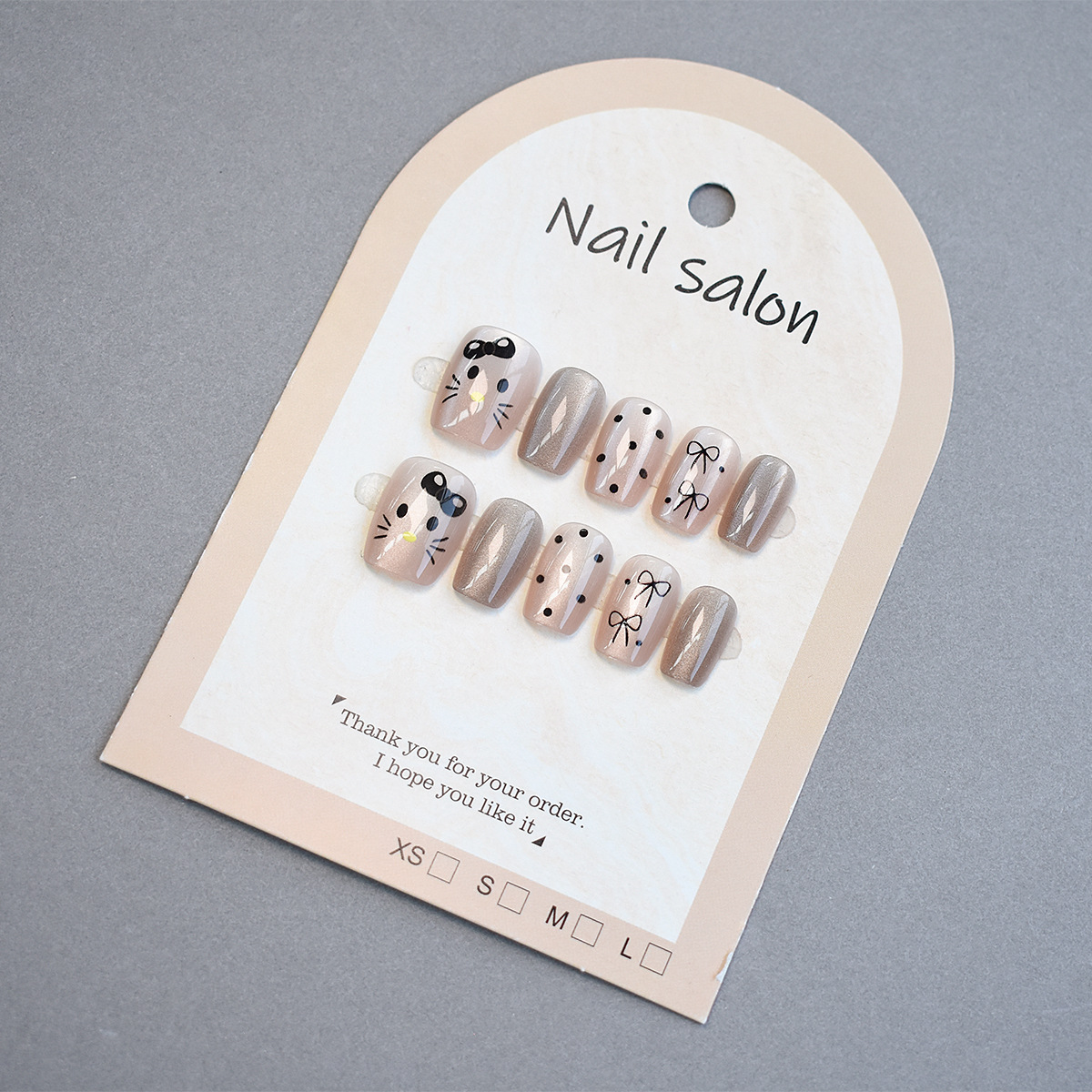 軽い贅沢な風は甲の紙のネイルの完成品を身につけて背景のカードを展示します。