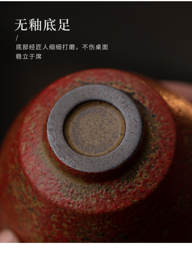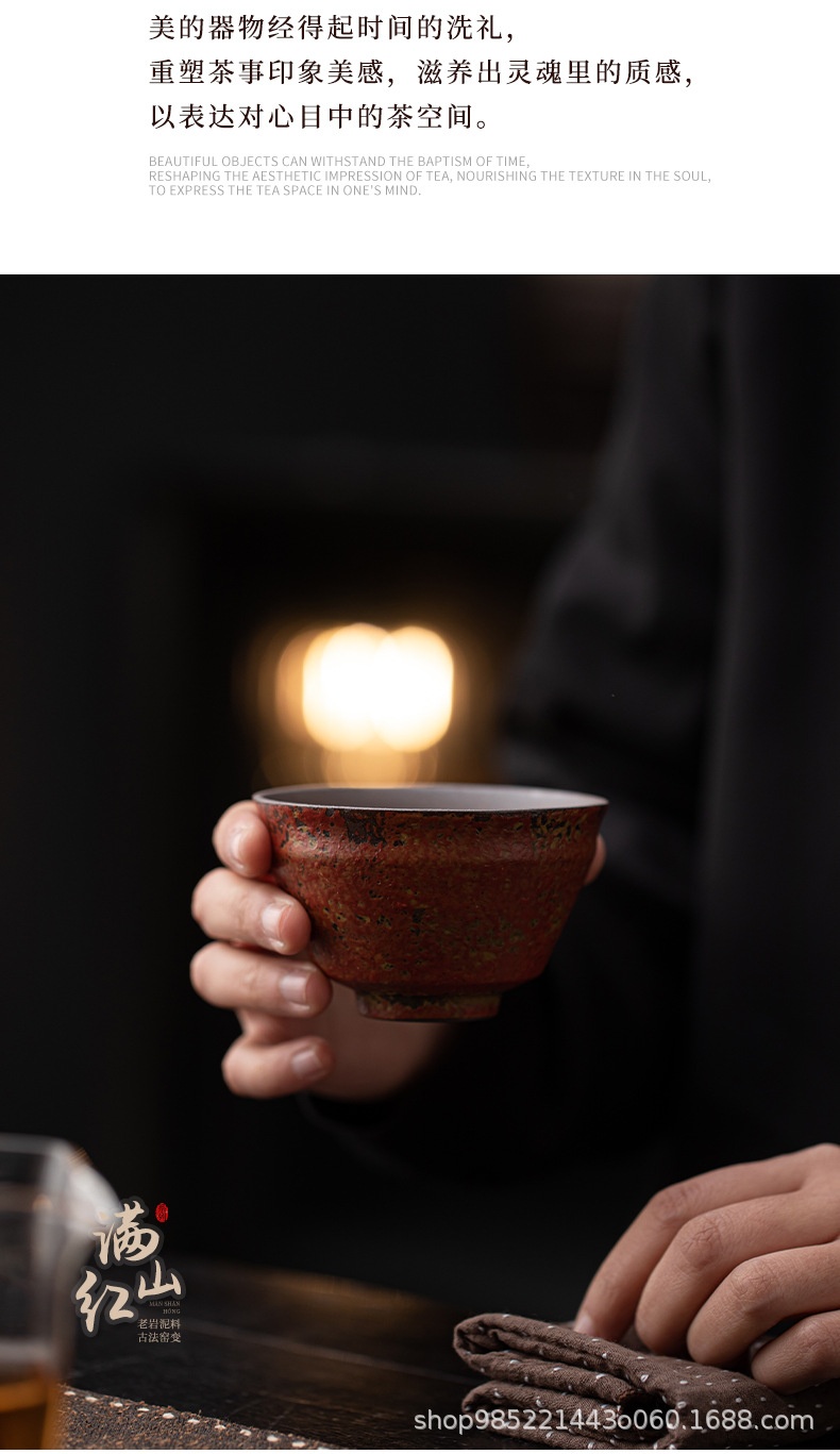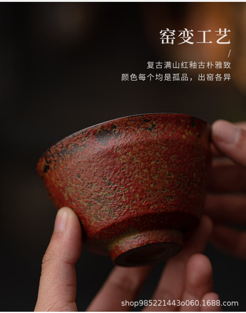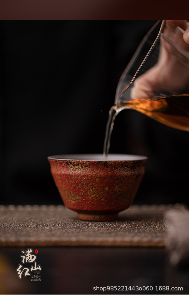 火石红陶瓷主人杯诧寂复古牡丹小号单人泡茶杯家用高档茶具品茗杯