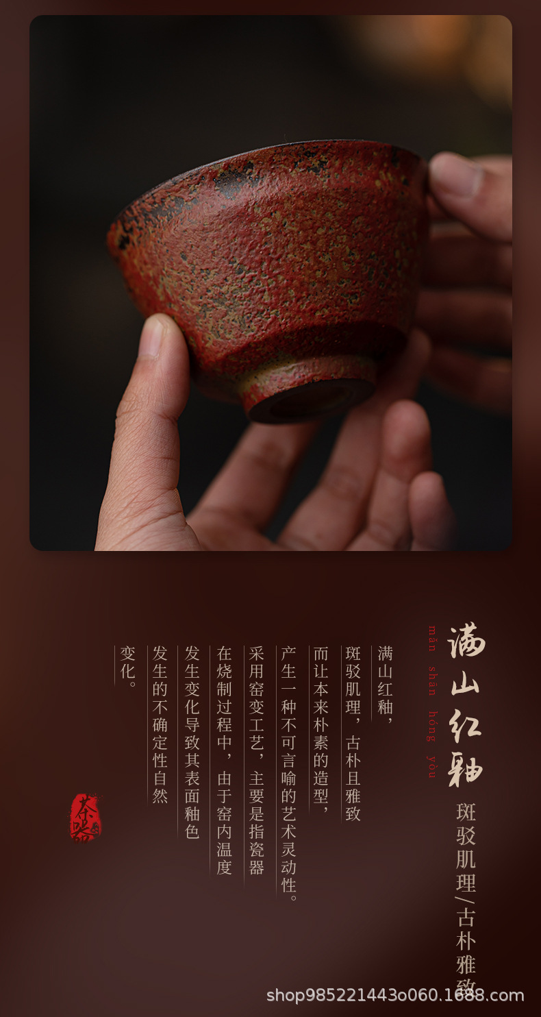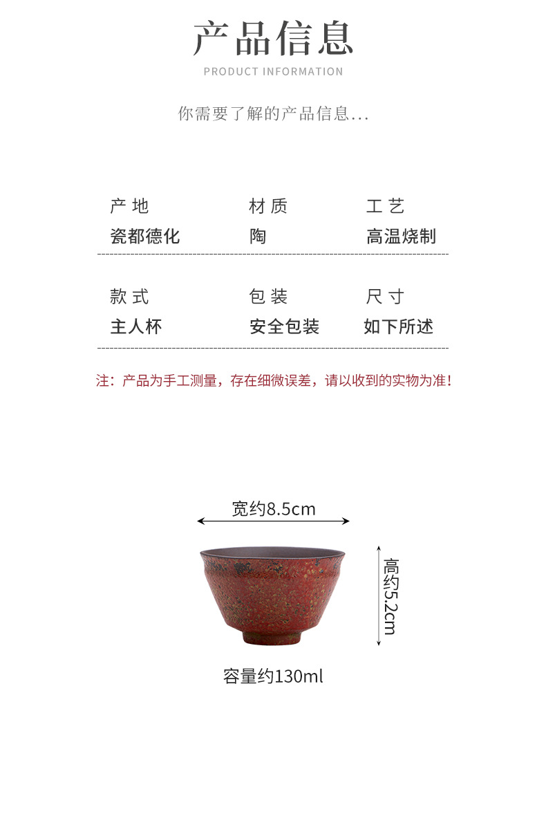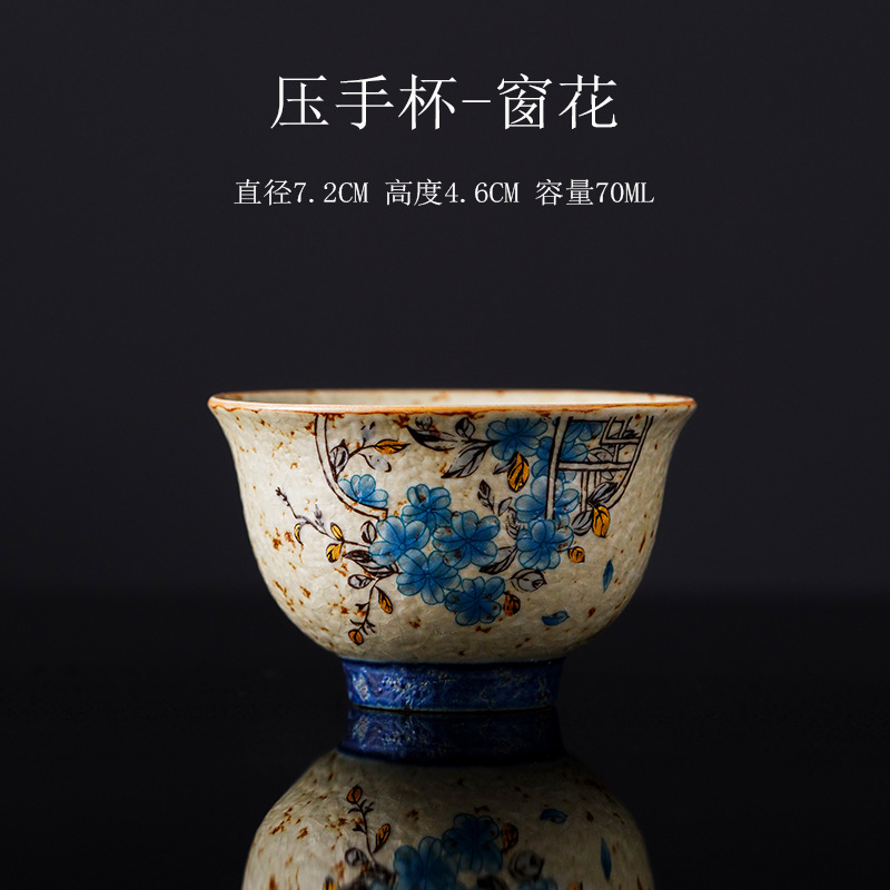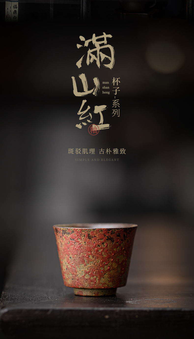 火石红陶瓷主人杯诧寂复古牡丹小号单人泡茶杯家用高档茶具品茗杯