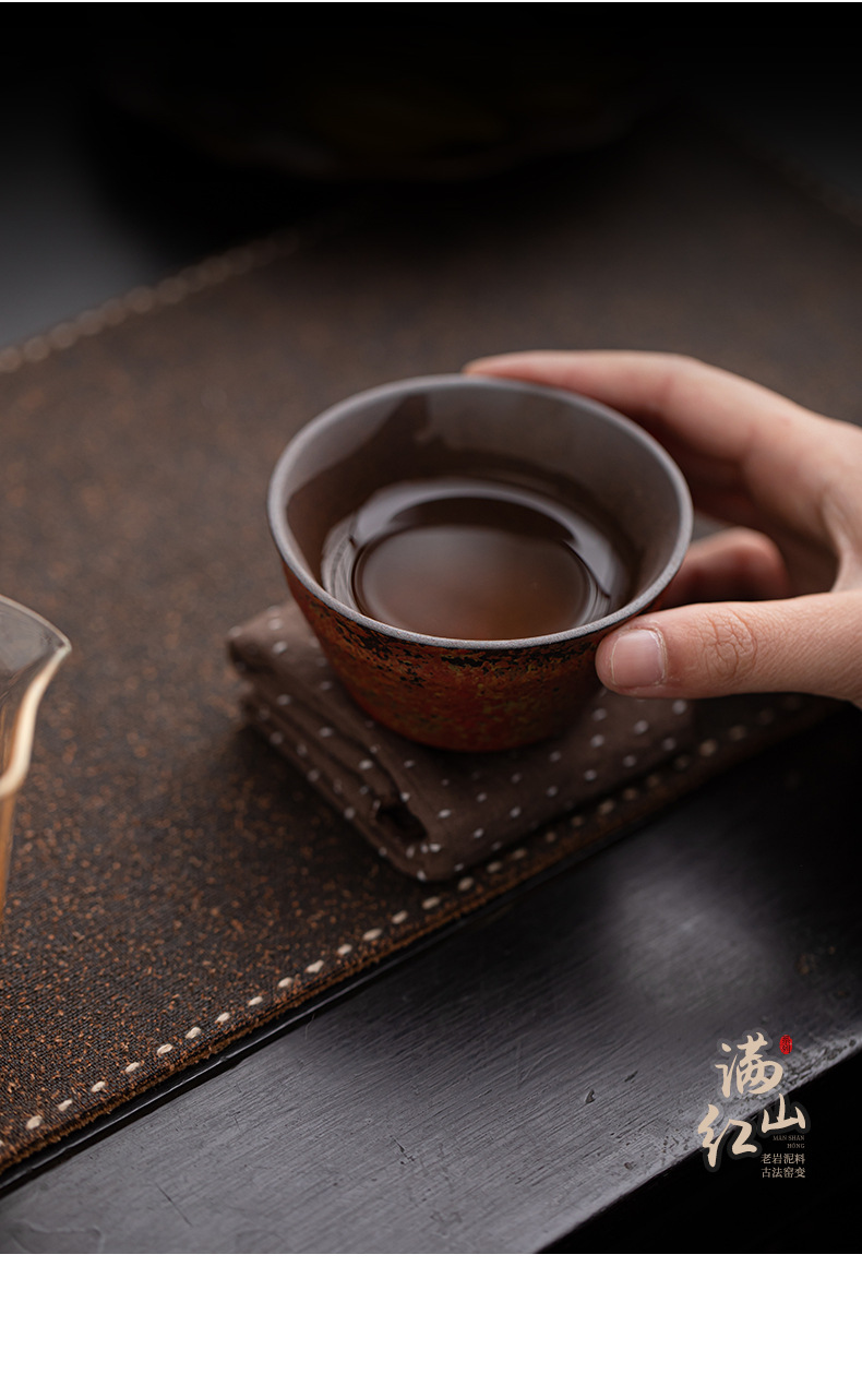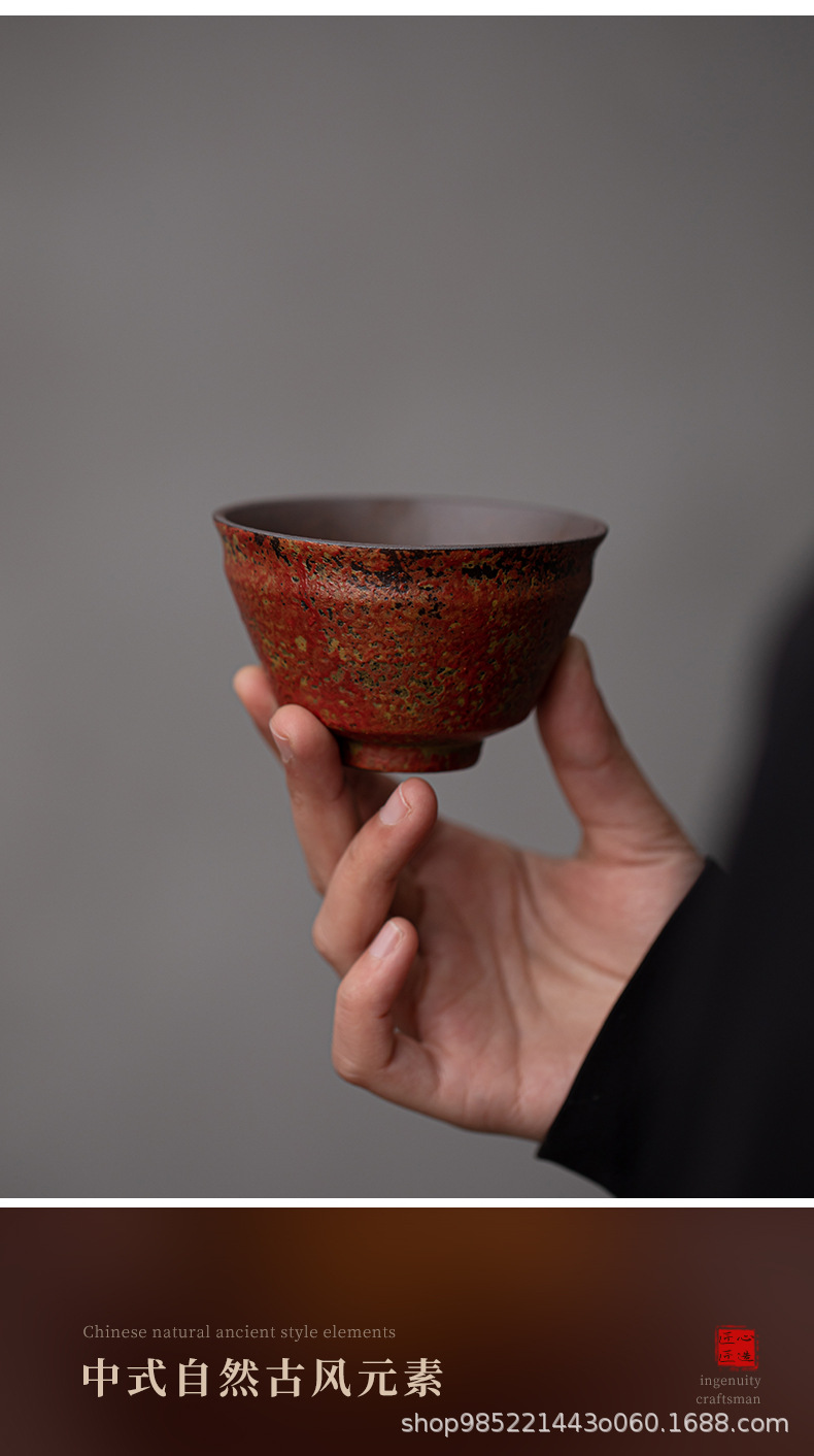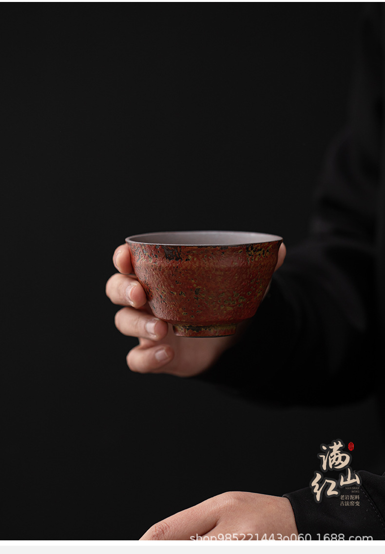 古い岩の泥の山いっぱいの赤い黄土の釉薬の小さいお茶の杯の品茗杯の陶磁器の寂杯の個人の杯の工夫の杯の杯の杯