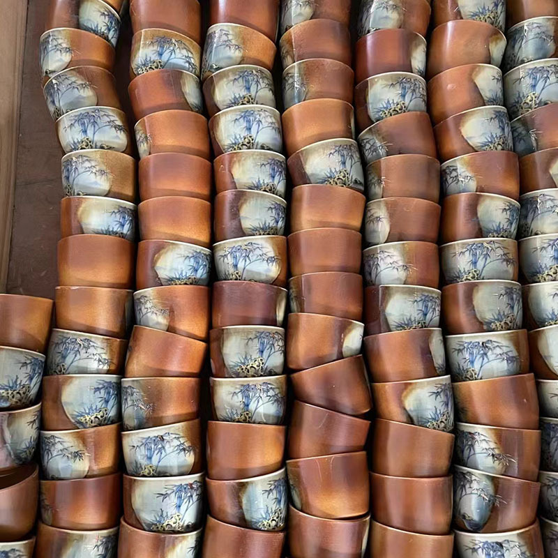 敦煌無相老岩泥茶杯個人専用レトロ黒陶工夫茶具金銀中国風主人杯