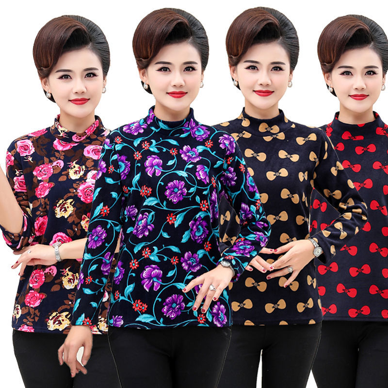 中老年女装秋冬加绒保暖内衣女士打底衫加厚上衣妈妈装高领保暖衣