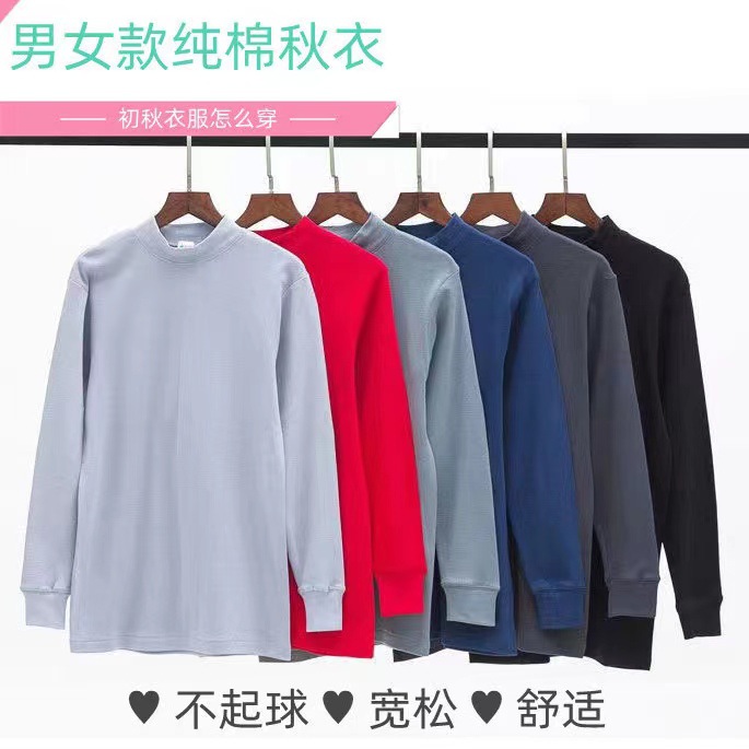 中老年男士秋衣纯棉贴身棉毛衫老人中高领保暖全棉内衣单件上衣