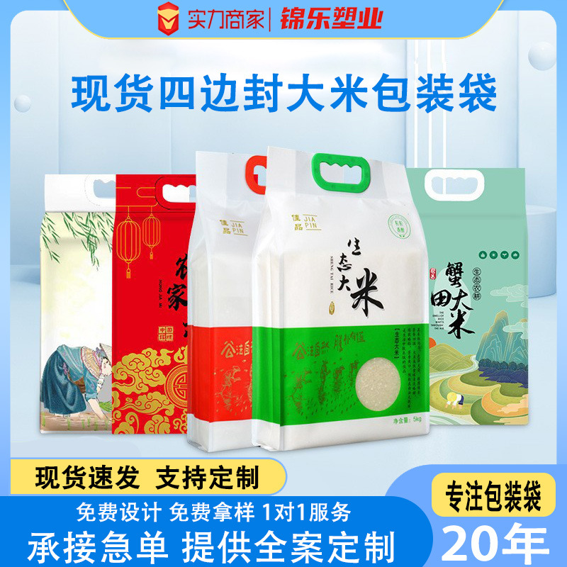 现货四边封大米袋彩印防潮五谷杂粮米面密封袋塑料手提大米包装袋
