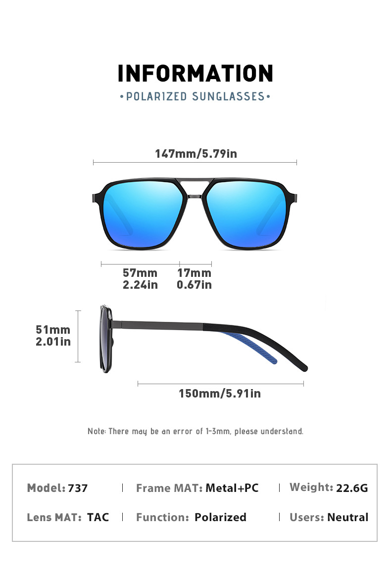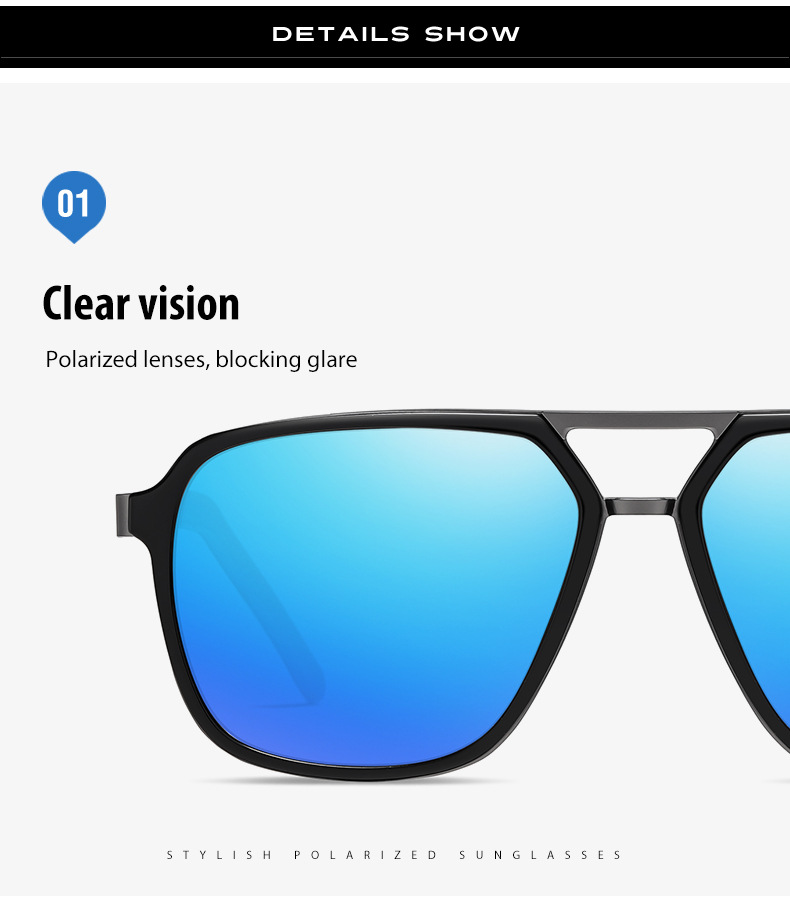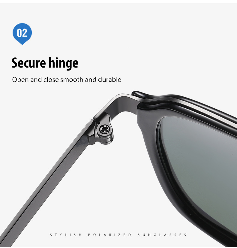 此款偏光太阳镜镜片采用加厚强化镜片,强化镜片的优点是更耐磨,柔韧性更好,抗冲击力更强,视线更清晰,防眩光效果更好!