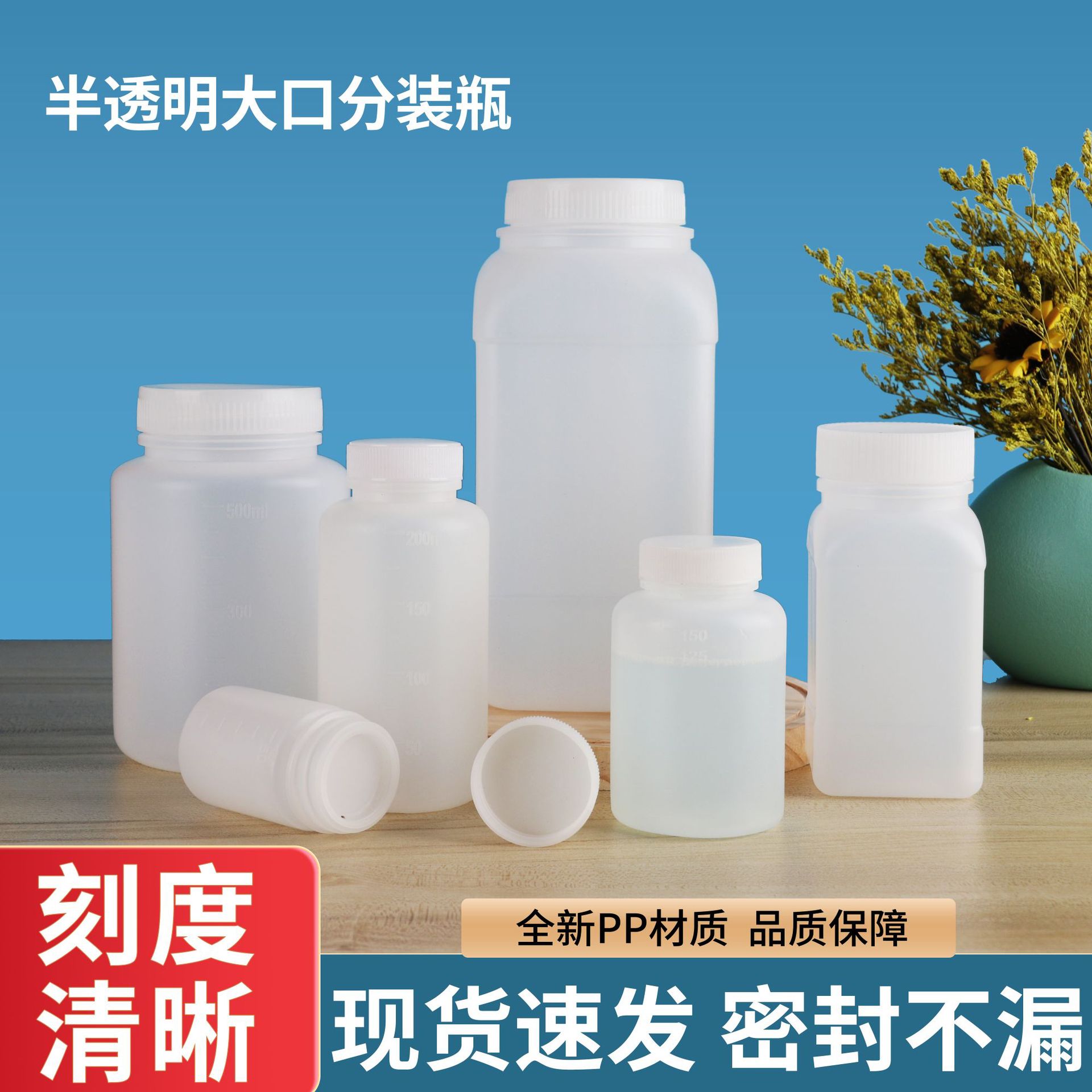 现货批发PE半透明大口塑料瓶粉末液体试剂瓶广口瓶带刻度分装瓶