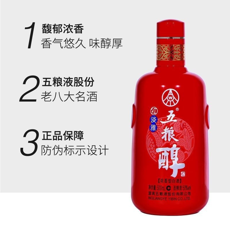 メーカー卸売り白酒五穀アルコール赤淡雅五穀アルコール50度濃香型白酒全箱結婚白酒H