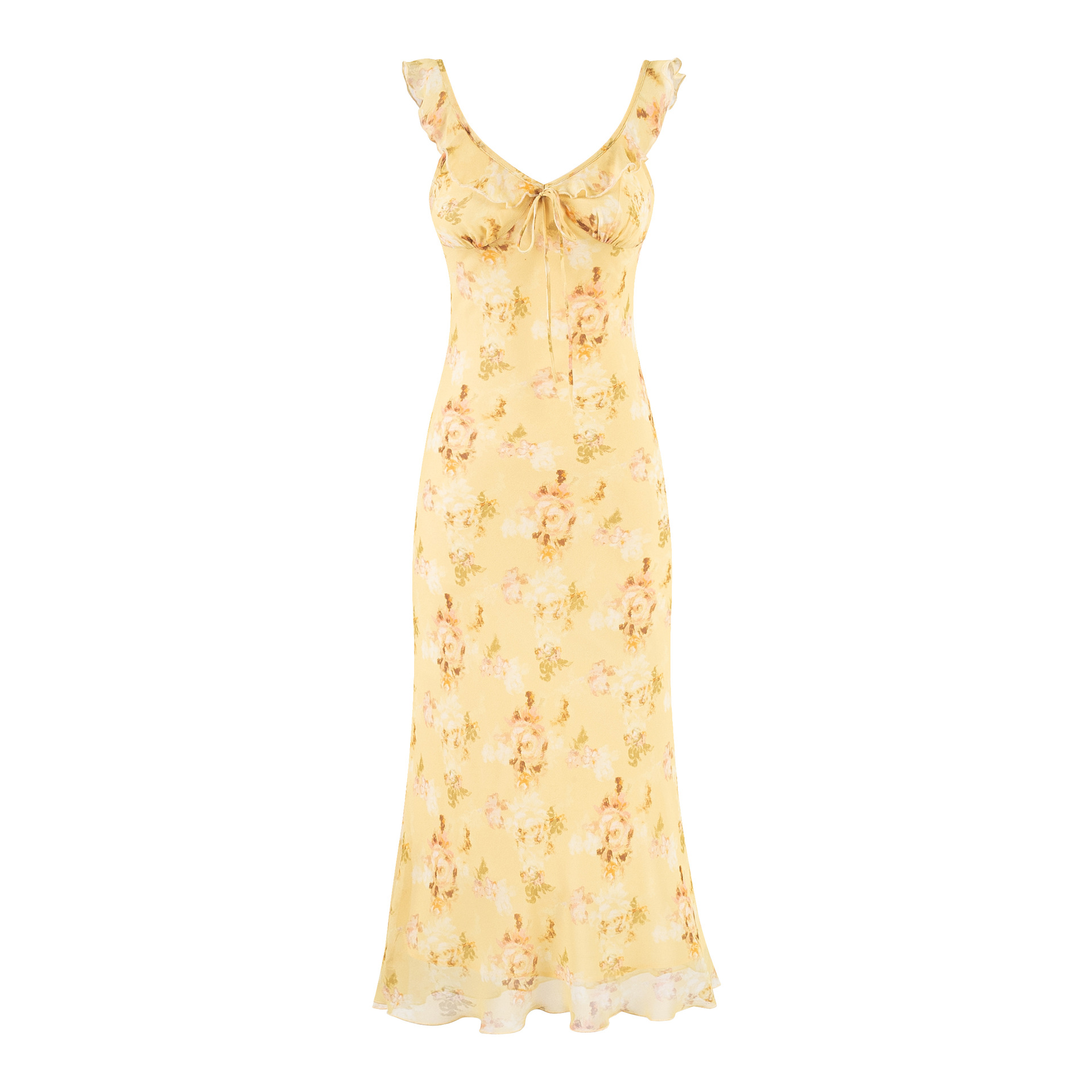 L25310-25 フレンチVネックフリルリボン花柄サスペンダースカートウエストタイトシーサイドバケーションロングスカート