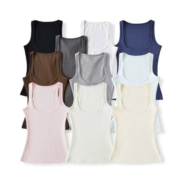 7373-24春の新型アメリカンギャルのセクシーな弾力性の身を修める方襟の鎖の骨のカジュアルな狭い肩の小さいベスト