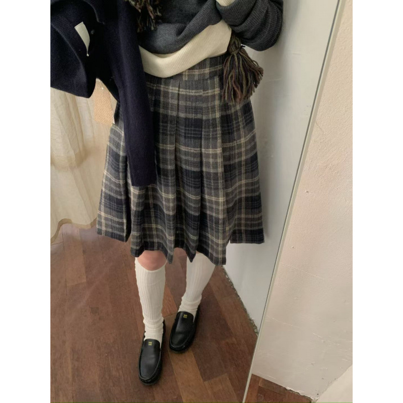 アメリカ学院風のレトロな格子縞の毛磨きスカートはやせています。