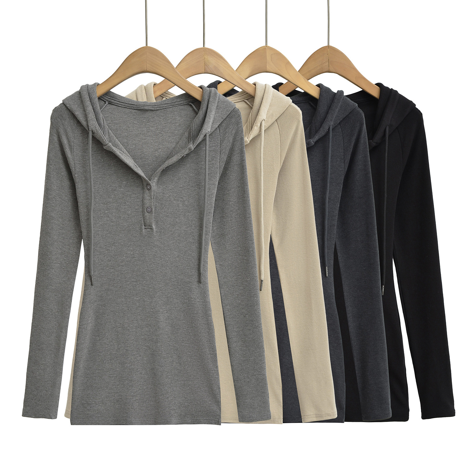 8579-24秋の新型欧米風のひもと帽子のドアの襟のボタンの長袖の簡単な修身の底のニットウェア
