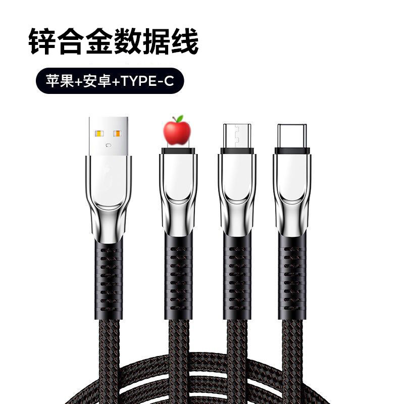 新しい亜鉛合金のケーブルはアップルの安卓TYPE-C三合一携帯電話の充電ケーブルを適用します。
