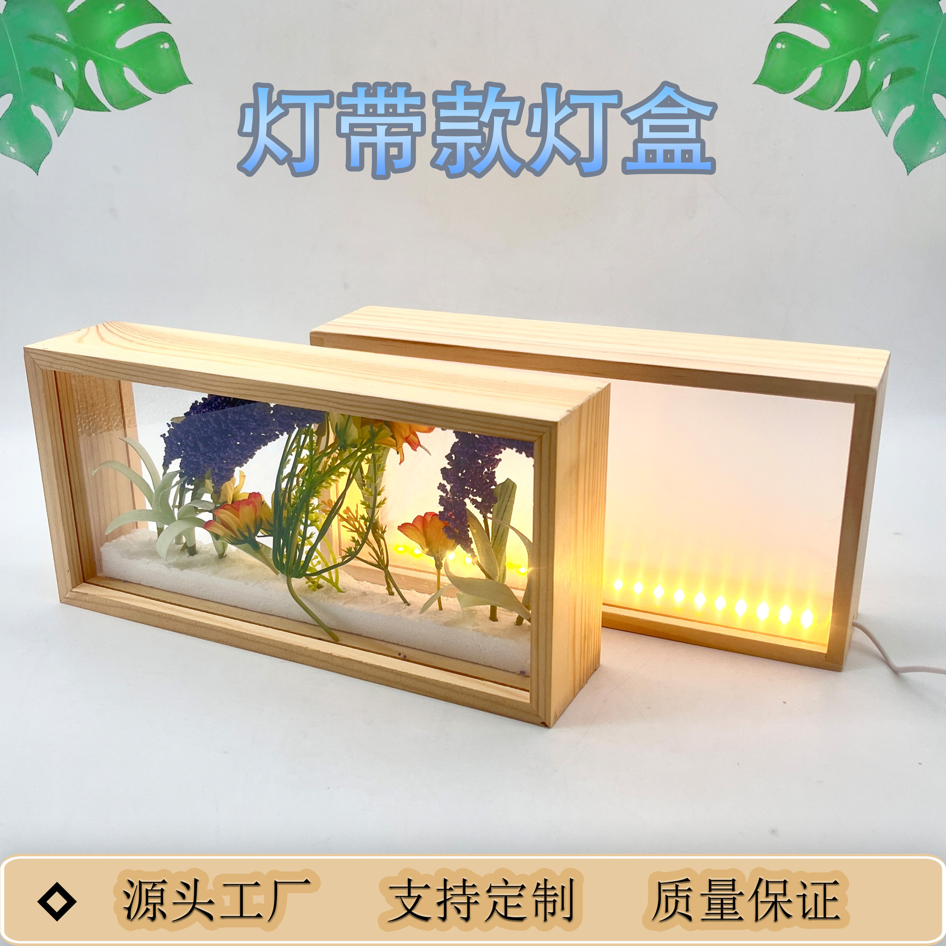 新しい中空 USB ドライフラワーフォトフレーム発光両面透明ガラスフレームクリエイティブ垂直木製フレームナイトライト