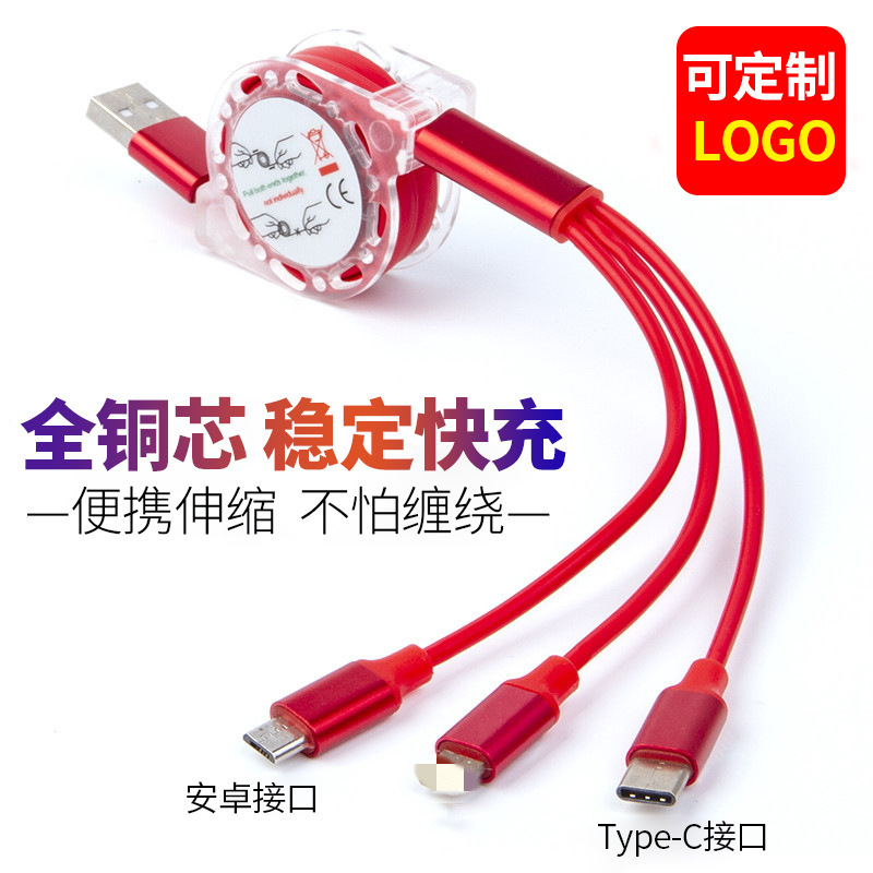 一引き三伸縮ケーブルはアップルの安卓TYPE-C三合一充電線のプレゼントに適している