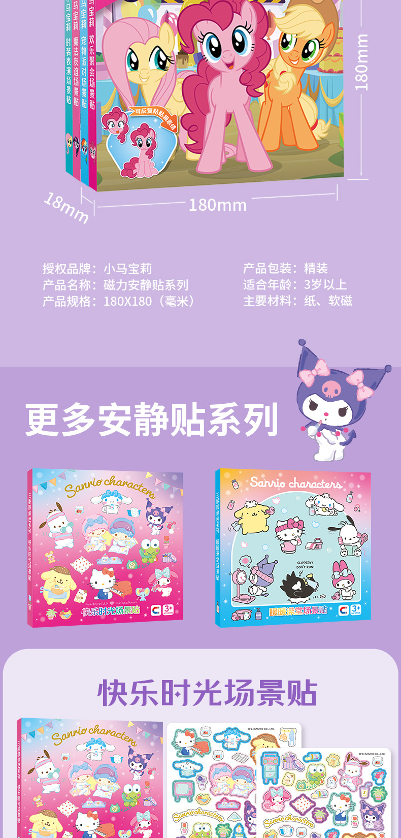 三丽鸥新款磁力安静书定制磁性艾莎萌可磁力贴大本女孩高级版磁吸