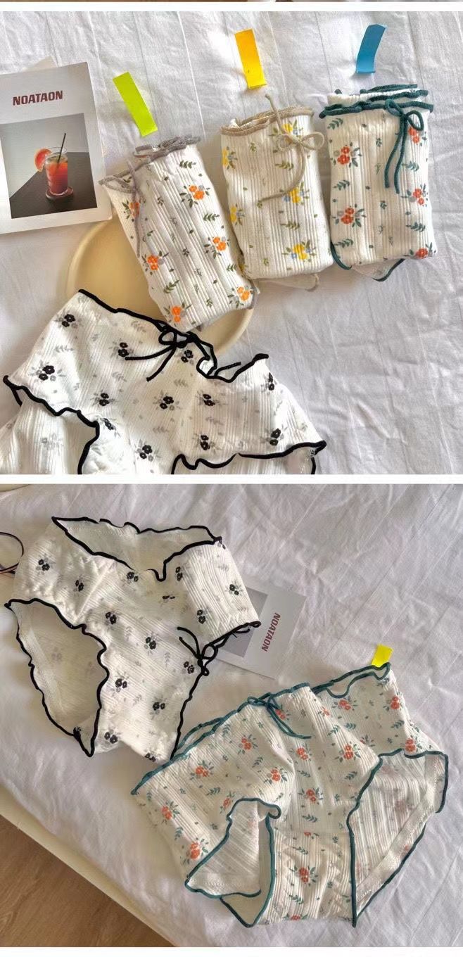 日本の下着の女性の中腰の通気性の綿の底の股の清新な小さい砕花の甘い蝶結びの木の耳元の女性の三角のズボン
