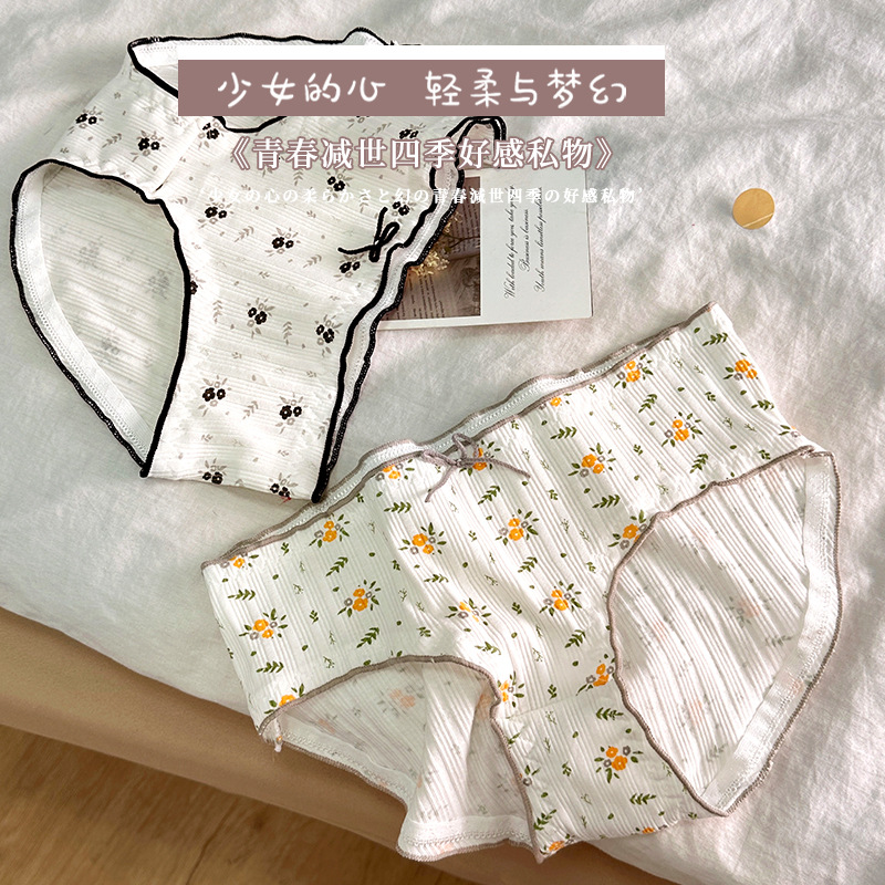 甜美日系碎花女士纯棉内裤透气全棉底档学生三角裤少女短裤头批发