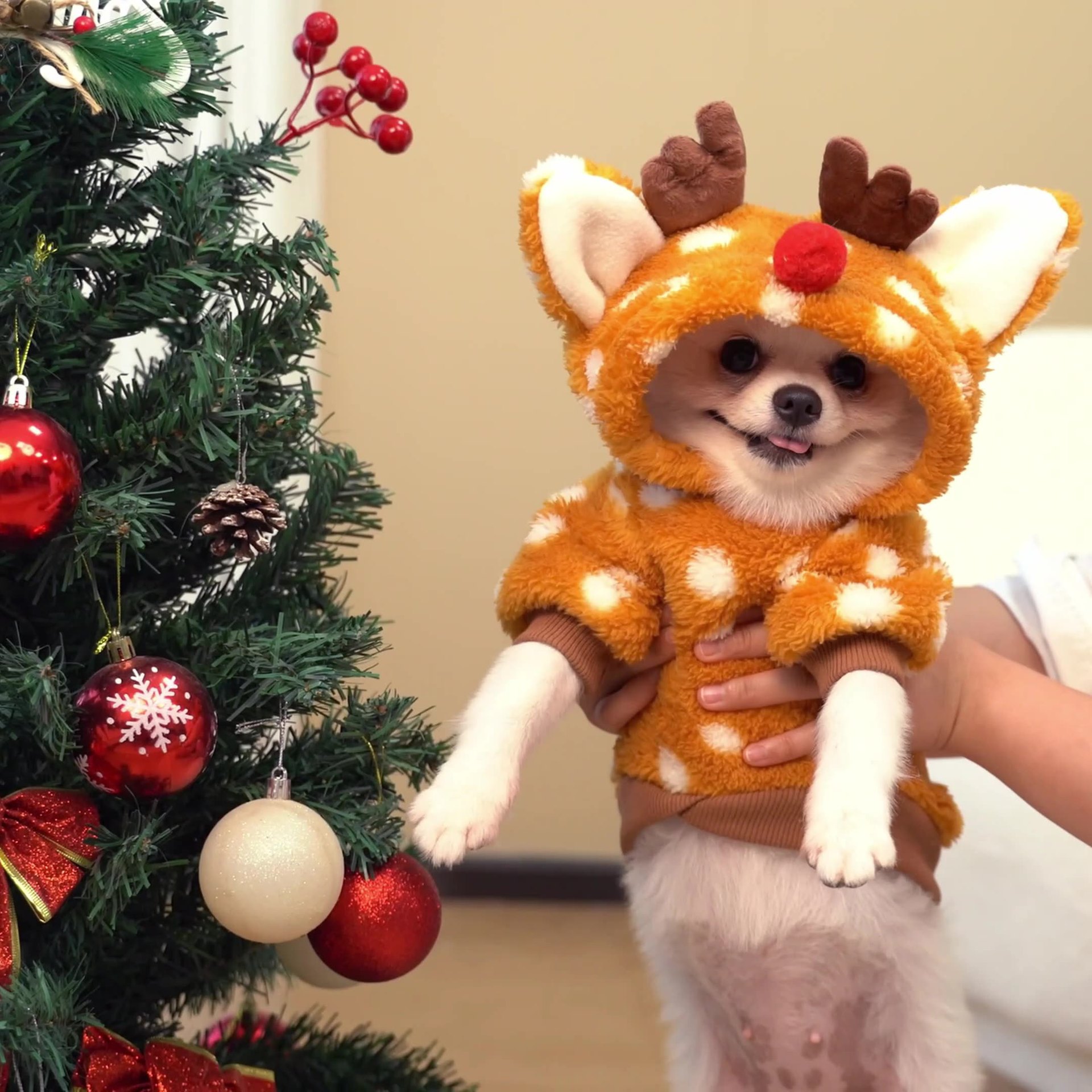 ペット犬クリスマス服二本足ヘラジカ秋冬プラスベルベット小中型犬フレンチドゥ変身服かわいいペット服