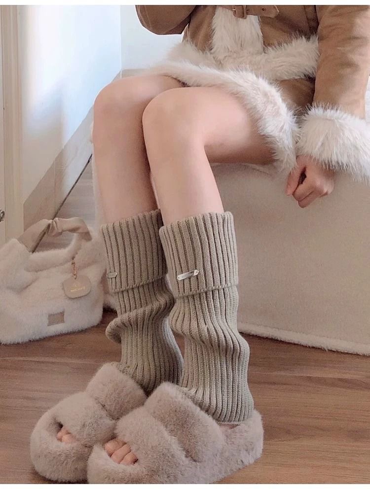 秋冬宽松腿套日系少女针织堆堆袜金属标袜套保暖针织鞋套女秋冬