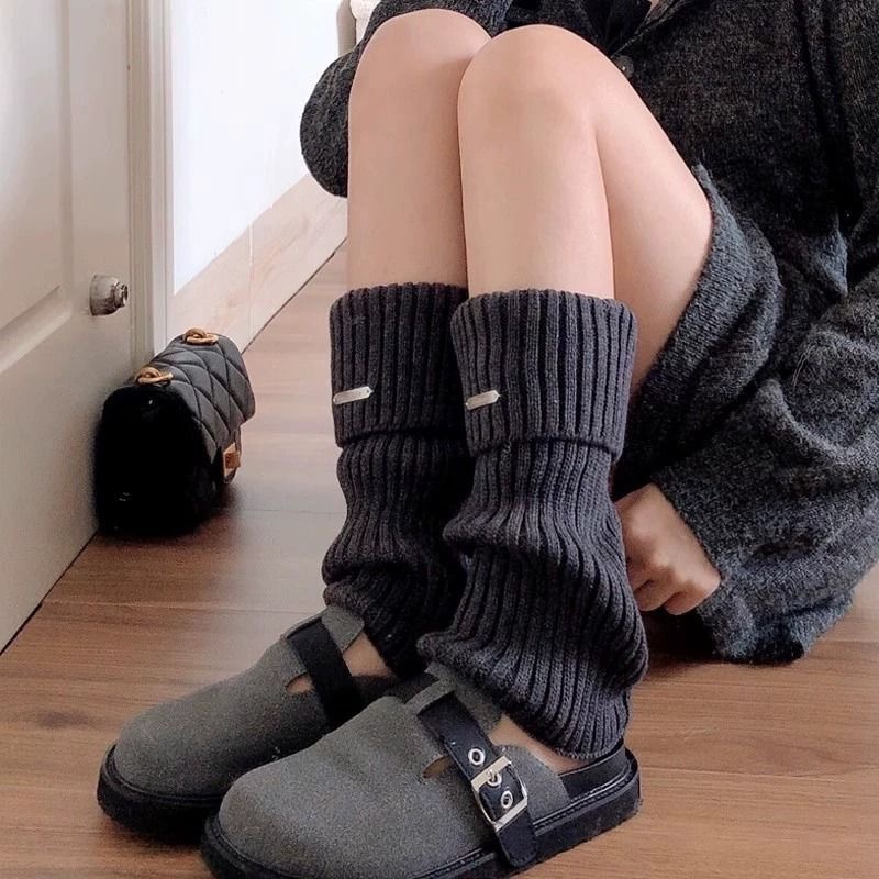 秋冬モデルy 2k亜文化金属標ギャルメリヤス足カバーjk靴下カバー女性中筒靴下保温