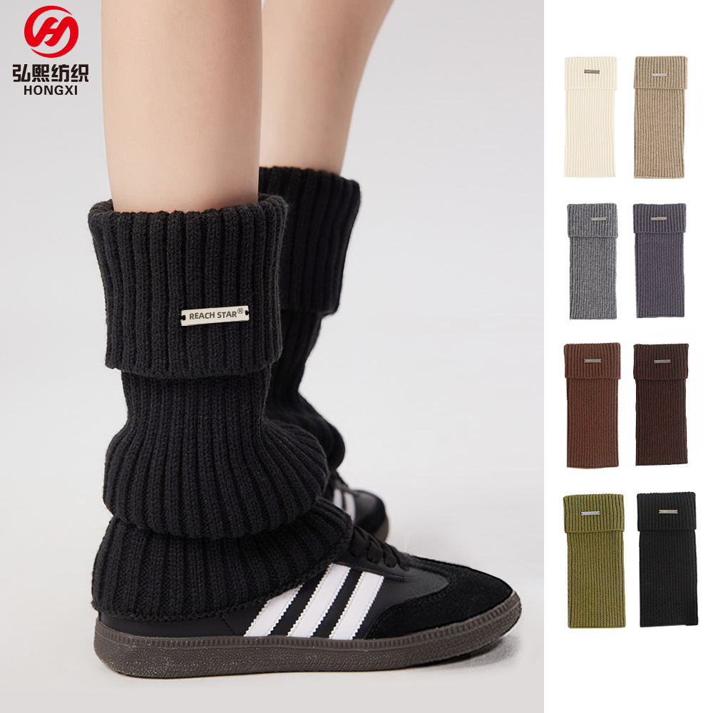 金属标美式复古套女秋冬季时髦百搭针织堆堆袜小腿套加厚加宽袜套