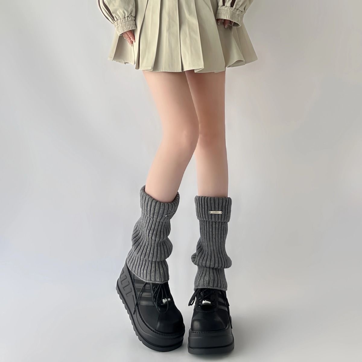 jk米白色袜套女秋冬加厚保暖咖色腿套腈纶中筒堆堆袜烟灰色小腿袜