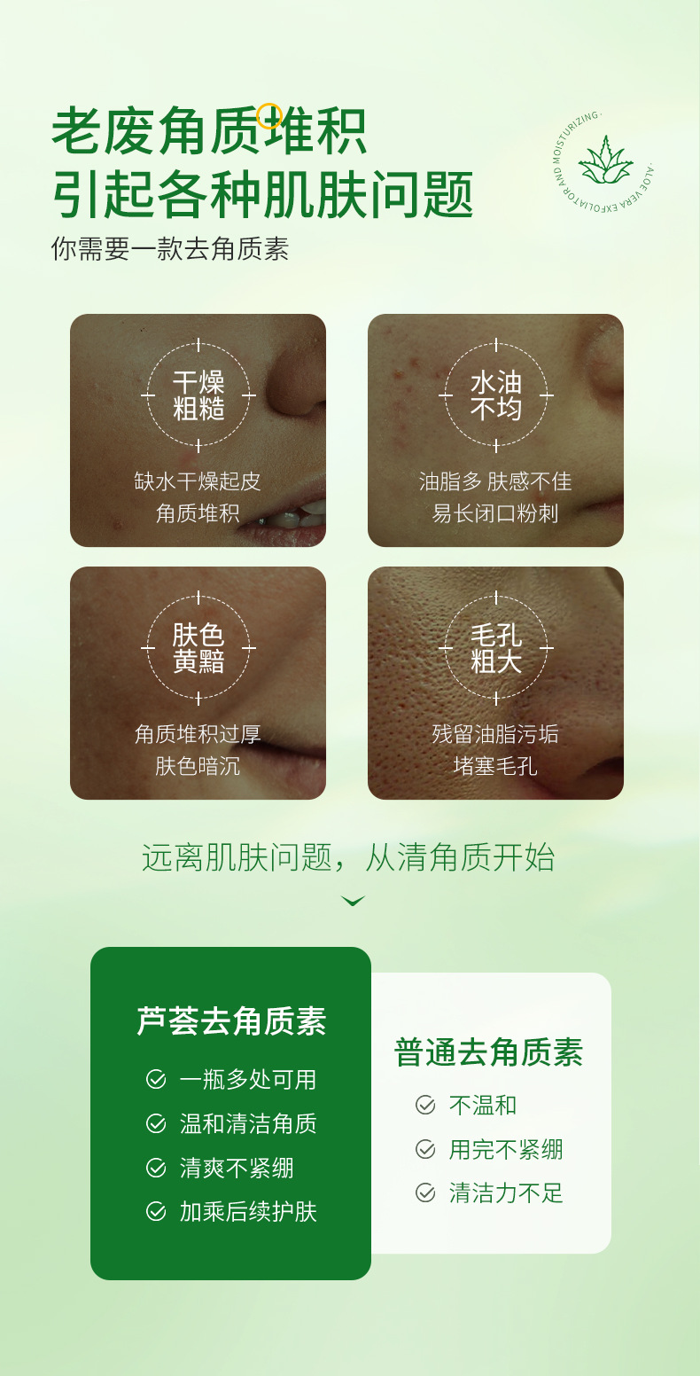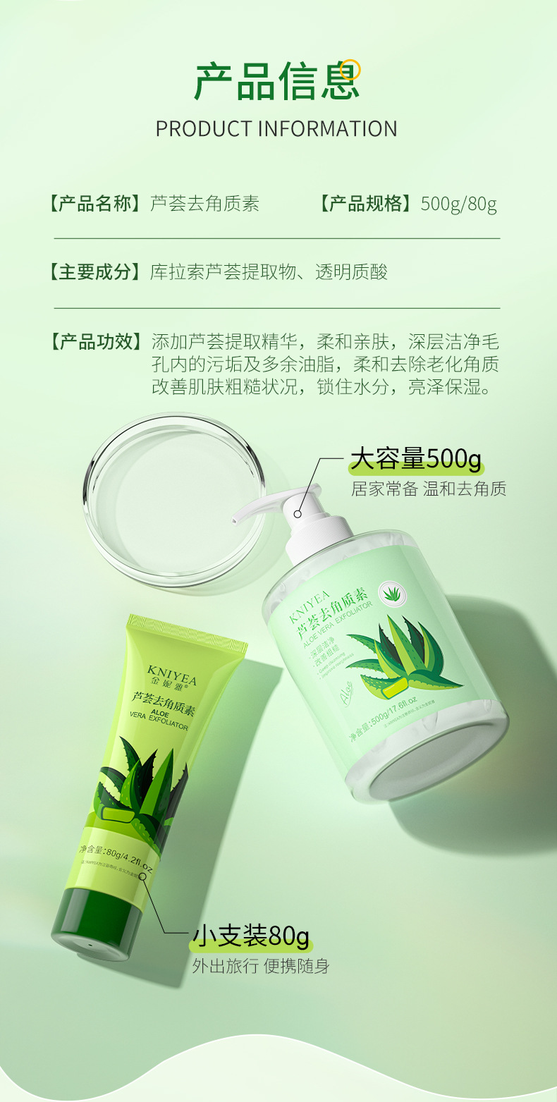 金妮雅芦荟去角质深层清洁面部毛孔啫喱全身搓泥宝去死皮跨境现货